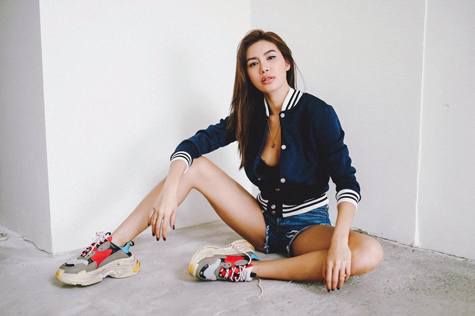 Có ai diện bomber với nội y mà vẫn sexy được như Minh Tú? Bên cạnh đó, cô nàng còn khoe tủ giầy sneaker đắt đỏ của mình, khác hẳn những tủ giầy cao gót đồ sộ của các người đẹp khác.