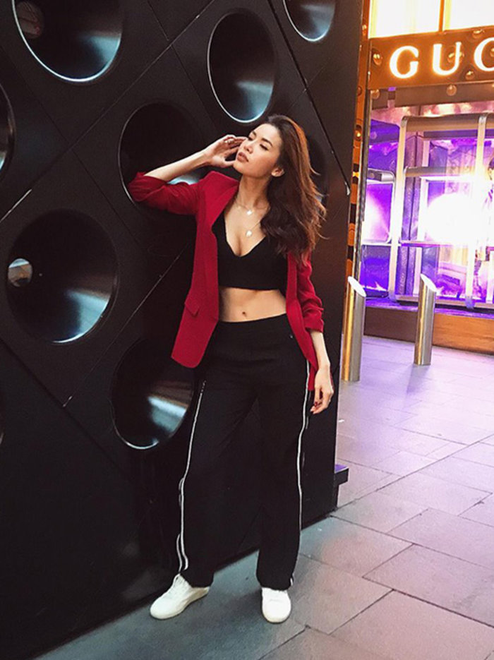 Blazer kết hợp với bra thể thao vẫn đẹp thế này thì chỉ có thể là Minh Tú.