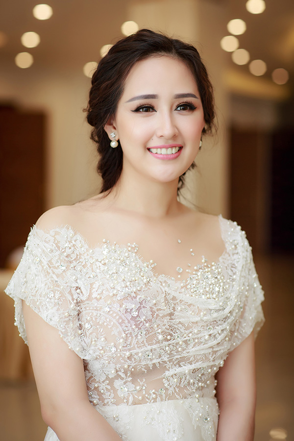 Chọn một chiếc đầm của NTK Chung Thanh Phong, Hoàng Thùy cho thấy thời kỳ đỉnh cao nhan sắc của mình với lối trang điểm nhẹ nhàng, tóc xoăn nhẹ thanh thoát.