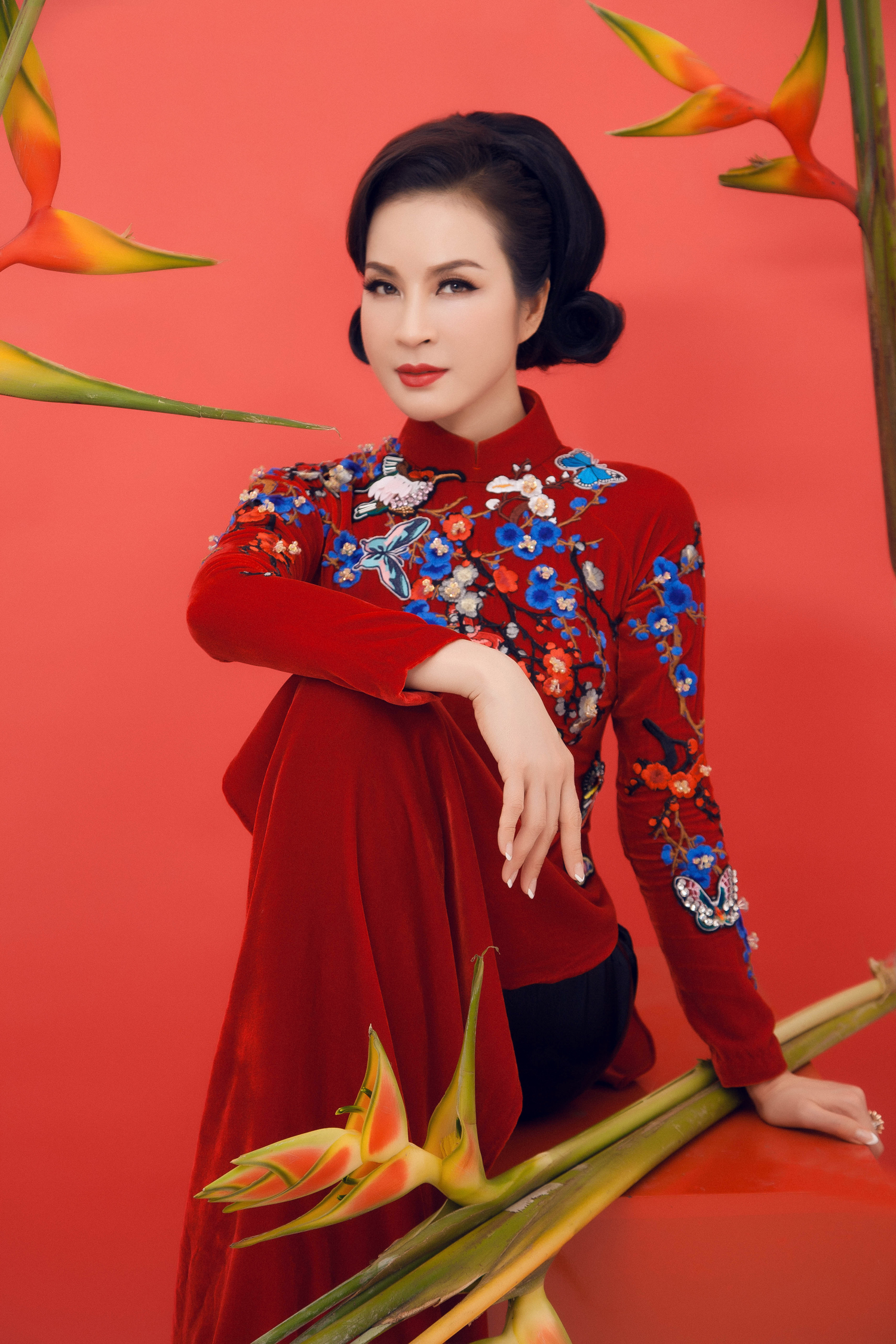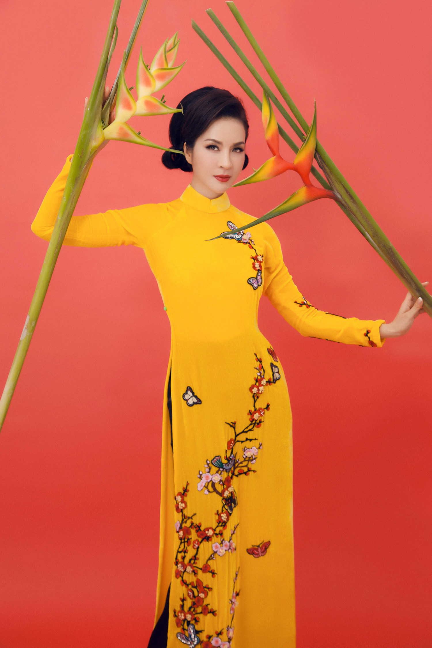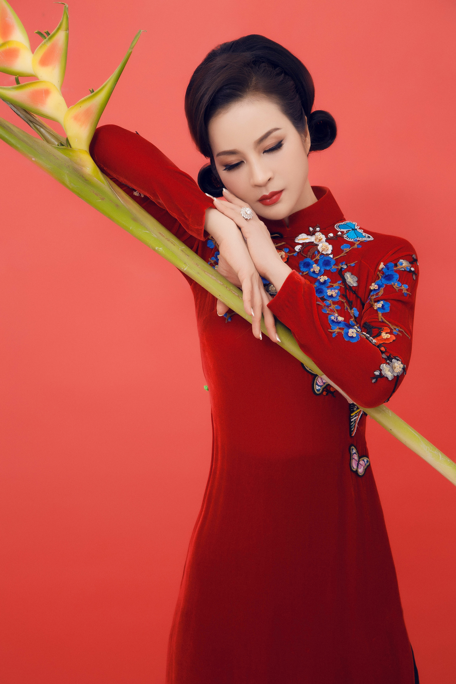 Tranh thủ trước ngày sang Mỹ ăn tết cùng con gái, Thanh Mai thực hiện bộ ảnh áo dài nhằm gửi tặng đến khán giả nhân dịp tết đến xuân về .