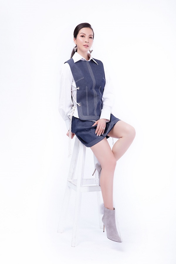 Thanh Mai khoe đôi chân dài trong thiết kế được cách điệu từ áo sơ mi.