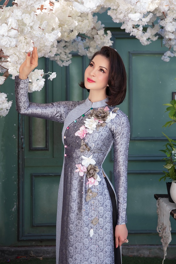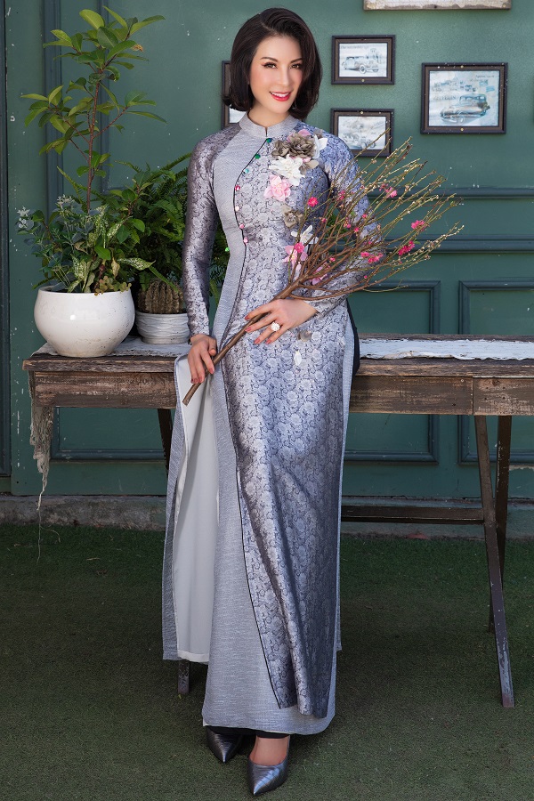 MC Thanh Mai đẹp nền nã trong dáng áo dài lụa màu bạc sang trọng, tinh tế