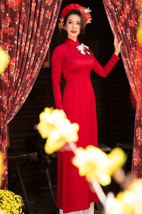 MC Thanh Mai đẹp trong mọi góc nhìn, những thiết kế áo dài cách tân màu đỏ trên chất liệu lụa satin cao cấp và êm ái càng khiến cô trở nên xinh đẹp hơn