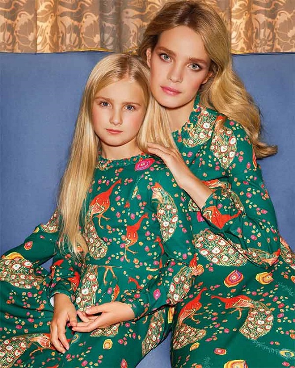 Siêu mẫu hàng đầu nước Nga Natalia Vodianova diện váy xanh họa tiết bắt mắt cùng cô con gái