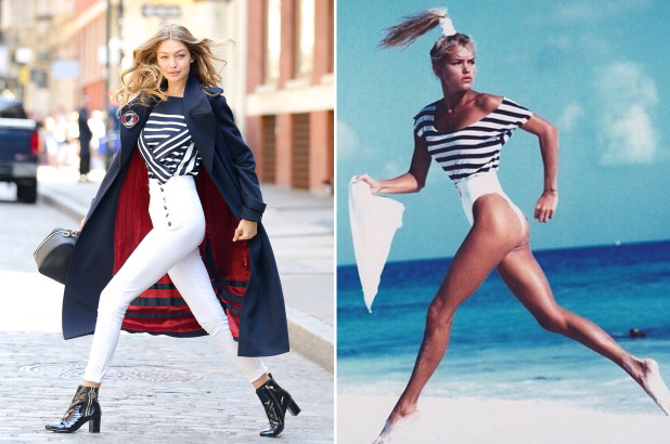 Gigi Hadid từng ” mô phỏng” lại trang phục của bà mẹ siêu mẫu của mình từ trang phục đến cách pose dáng