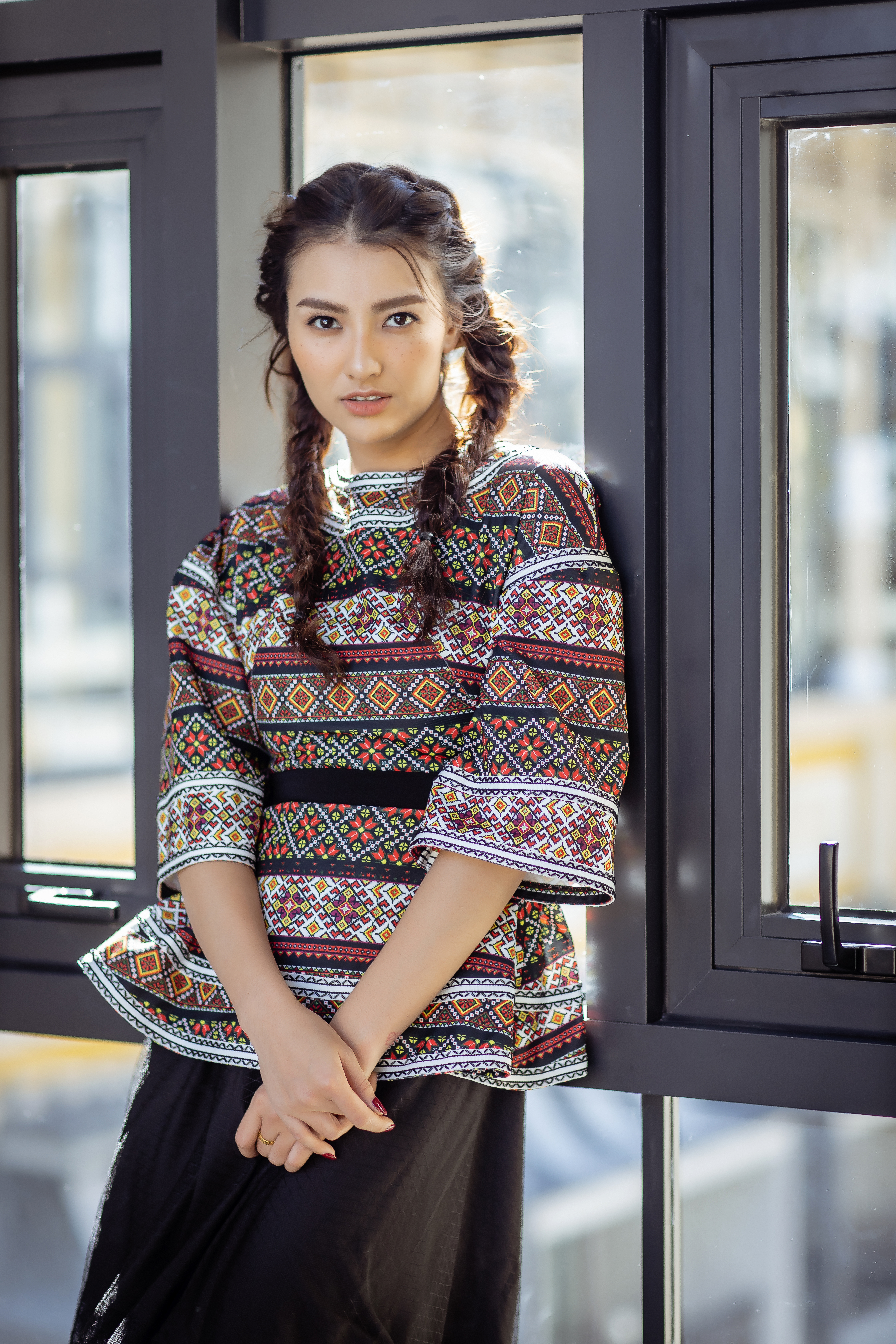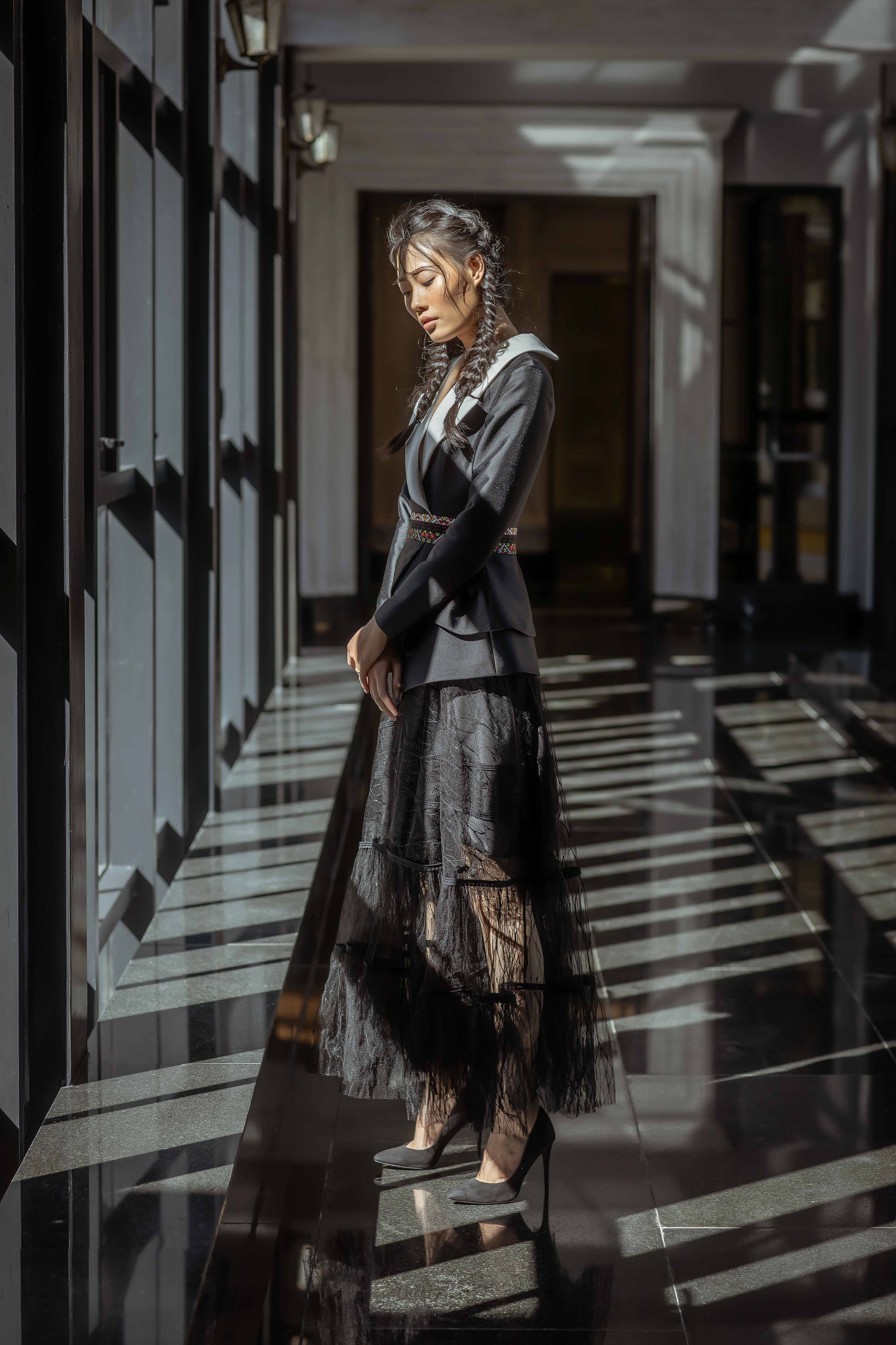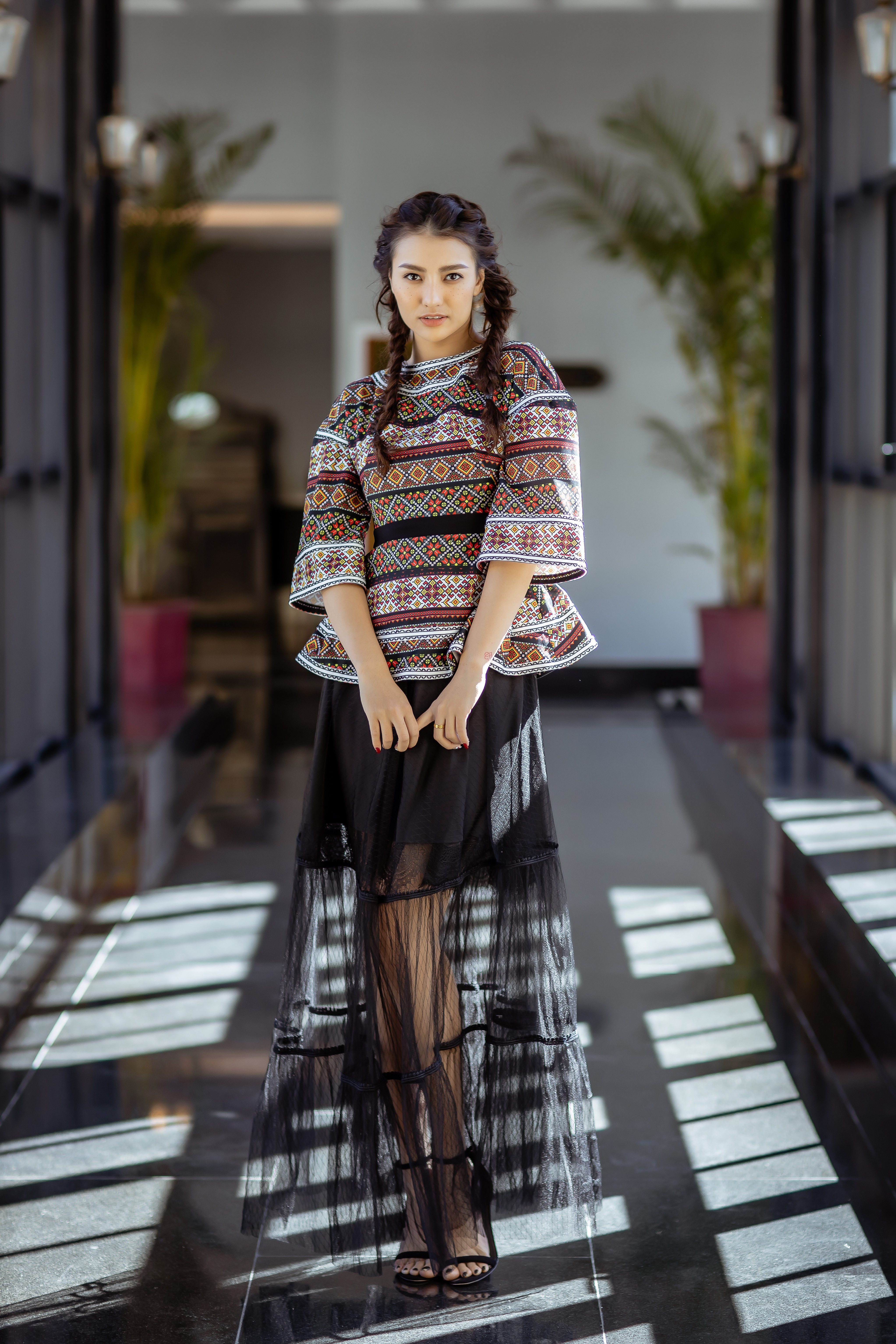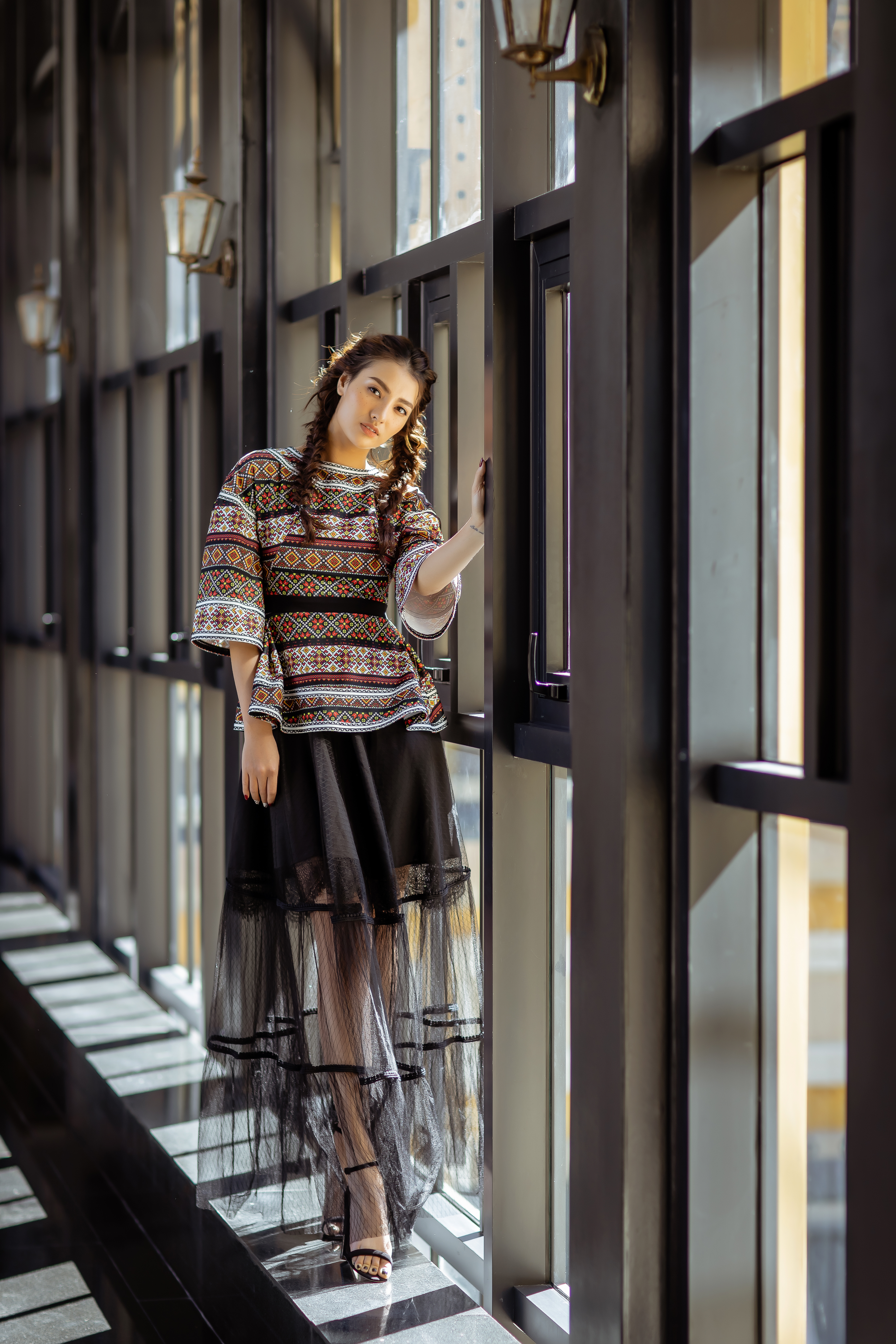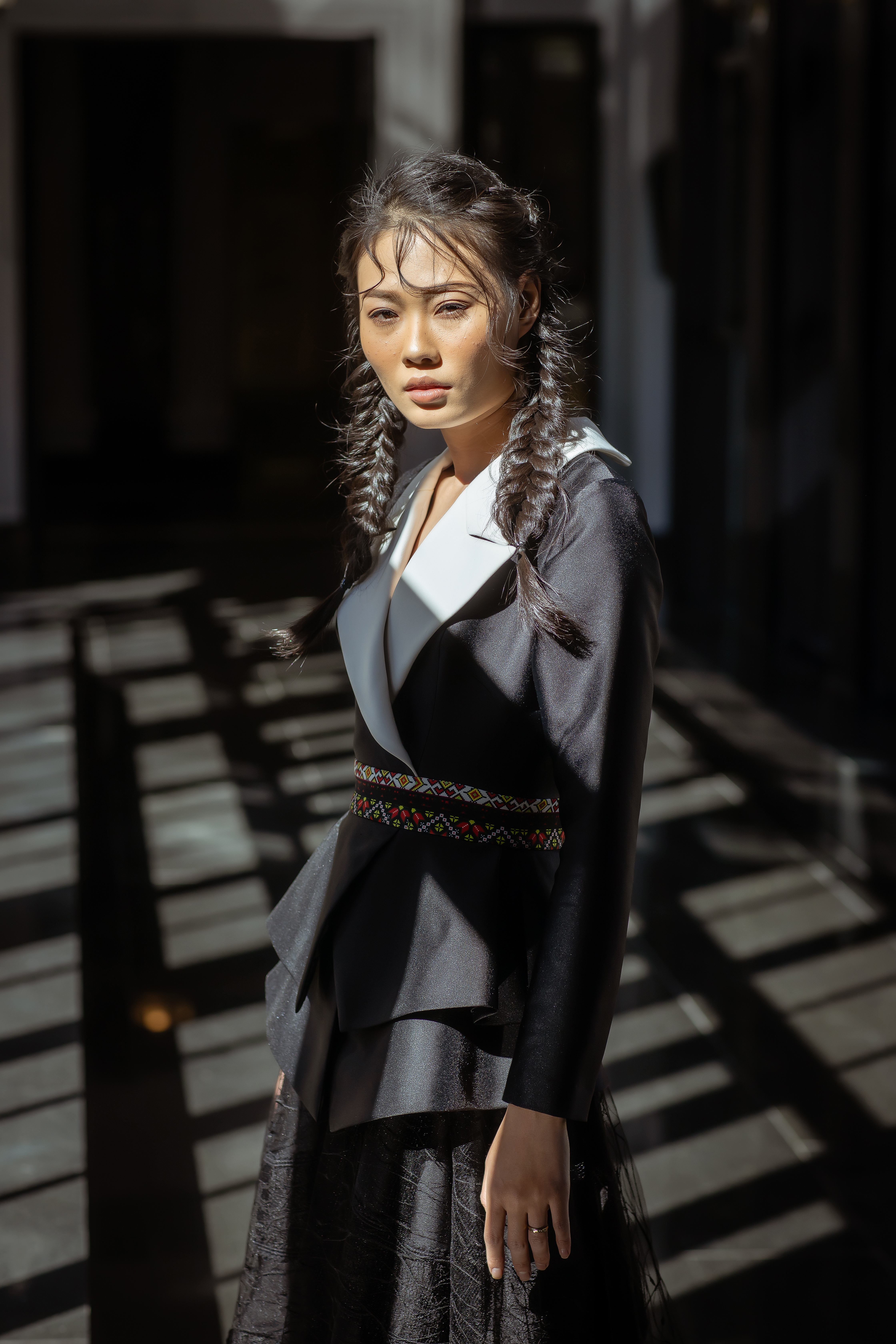 Trong bộ ảnh thời trang, chân dài Mai Giang cũng xuất hiện. Chân dài có vẻ quyến rũ, mặn mà đối lập với sự trong sáng của Hồng Quế. Gương mặt đậm chất Á đông với gò má cao, xương hàm vuông, mắt nhỏ… của Mai Giang thích hợp với hình ảnh của những cô gái miền Tây Bắc mà Hà Duy muốn gửi gắm trong bộ sưu tập.