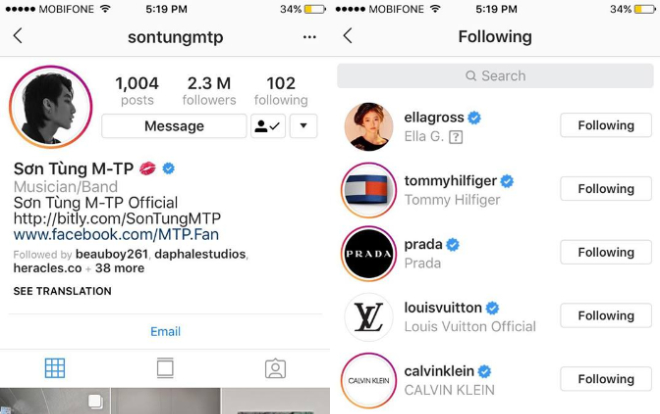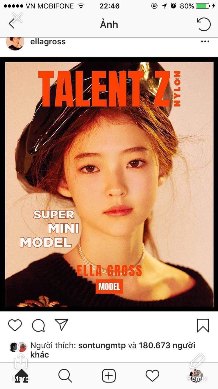 Instagram của Sơn Tùng follow ngoài các thương hiệu tiếng tăm thì còn có người mẫu nhí Ella Gross