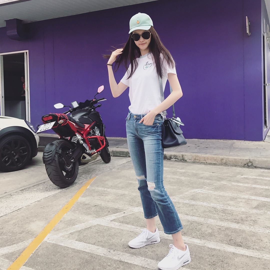 Trang phục với áo thun và quần jeans luôn là sự lựa chọn thường xuyên của cô nàng