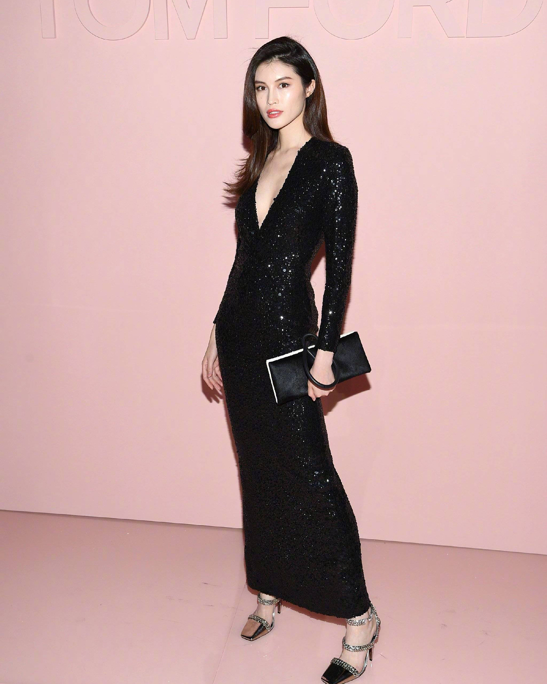 Đẹp lộng lẫy với chiếc đầm đen sequin xẻ ngực tại một sự kiện thời trang