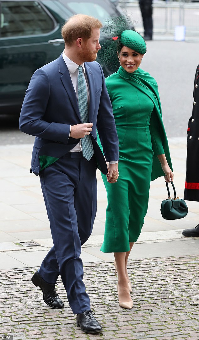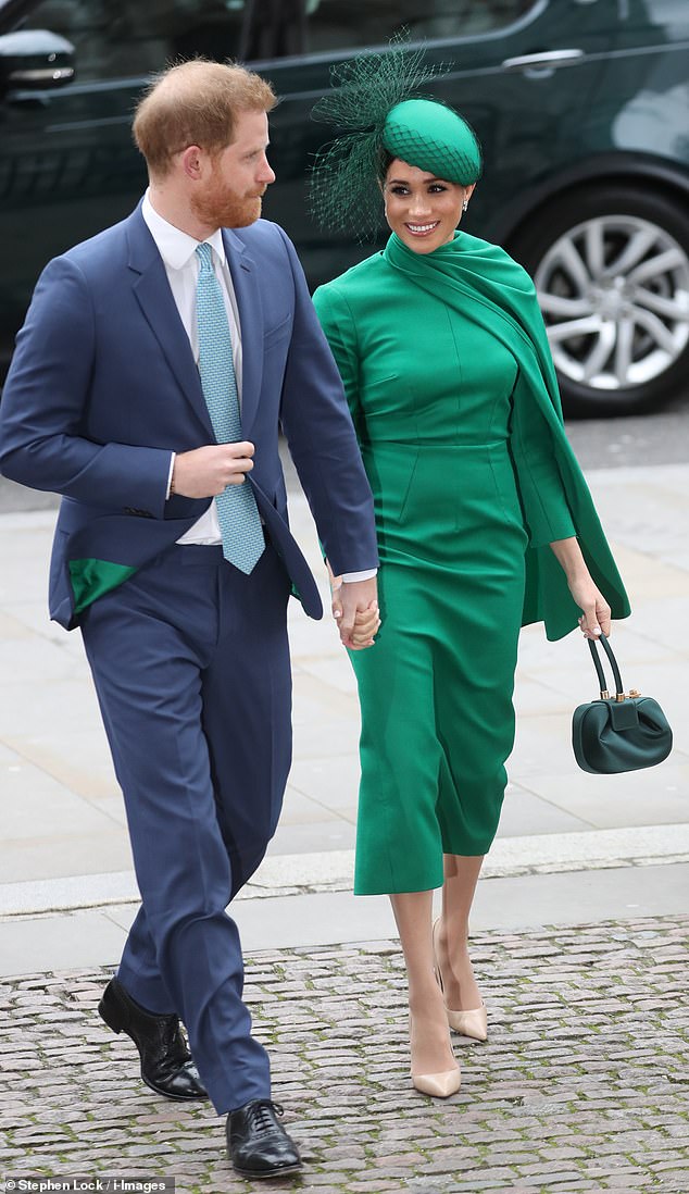 Meghan Markle trong bộ váy xanh lá cây kín đáo ôm sát body khi xuất hiện trước tu viện Westminster