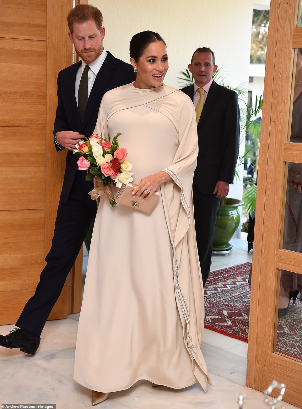 Tối cùng ngày, cặp vợ chồng hoàng gia dự tiệc chiêu đãi tại dinh thự của đại sứ Anh ở thủ đô Rabat, Morocco. Nữ công tước diện bộ váy bằng lụa cao cấp đính pha lê do thương hiệu Dior thực hiện riêng, lấy cảm hứng từ kaftan - trang phục truyền thống của phụ nữ Morocco.