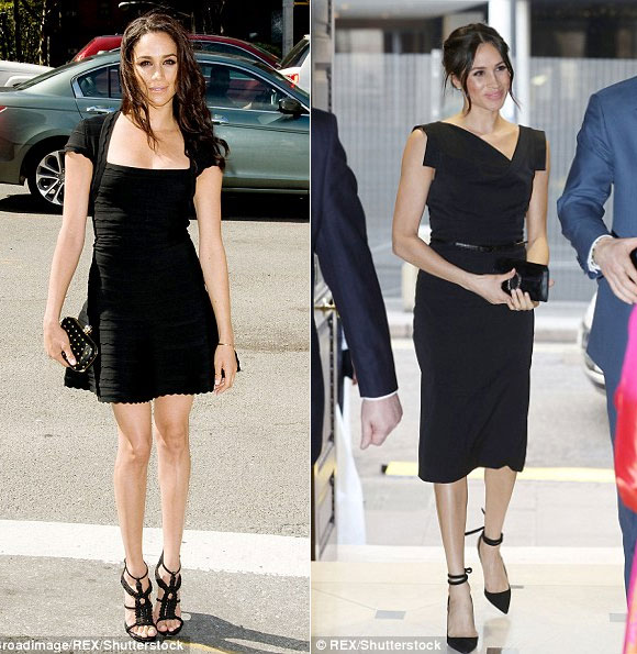 Nếu như trước, nữ công tước xứ Sussex khoe nhiều phần cơ thể thì hiện giờ, cô đã tiết chế với phong cách quyến rũ lại không quá lố
