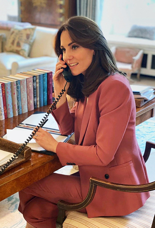 Hình ảnh mới nhất của Công nương Kate trên bàn làm việc của mình bên trong Điện Kensington trong bộ a6u phục màu hồng phấn của Marks & Spencer