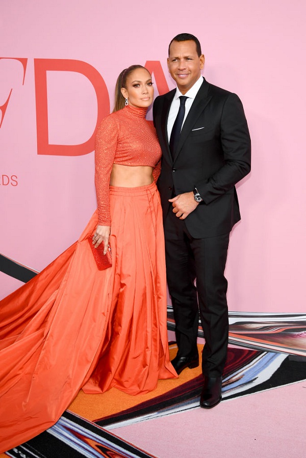 Nàng ca sĩ tài năng Jennifer Lopez được vinh danh là biểu tượng thời trang của năm tại CDFA 2019. Cô xuất hiện bên cạnh bạn trai trong áo crop top cổ lọ cùng chân váy dài thướt tha của Ralph Lauren.