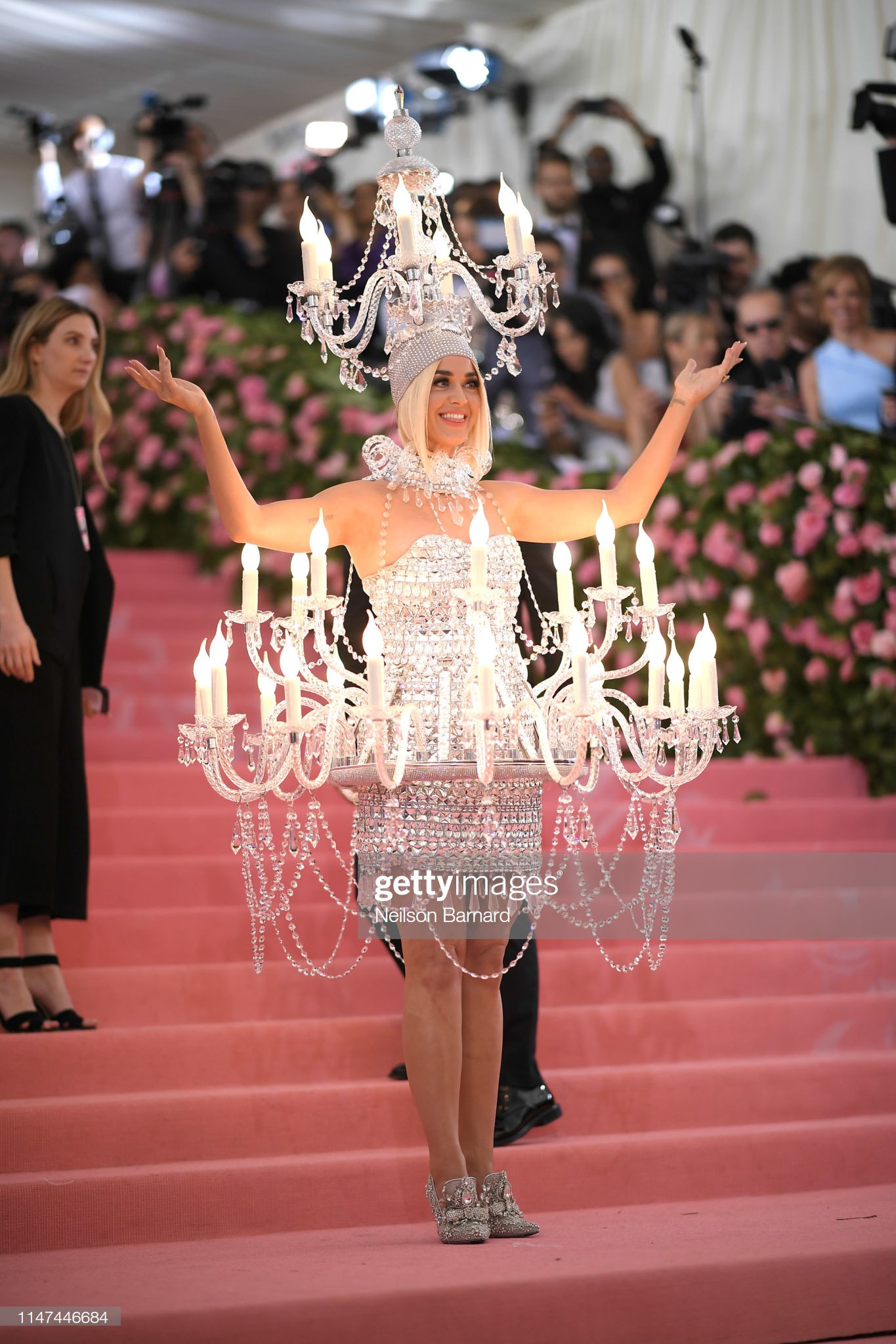 Phút ban đầu, Katy Perry khiến nhiều người ngạc nhiên, thích thú với bộ váy đính kết pha lê lấp lánh, hóa thân thành chùm đèn trần lộng lẫy, “tỏa sáng” theo một cách đúng nghĩa.
