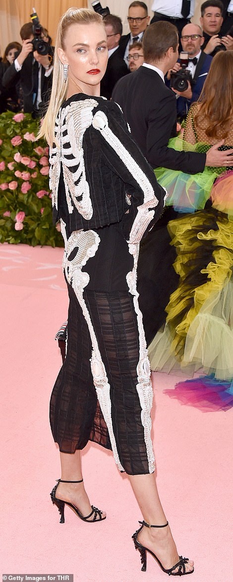 Người mẫu Caroline Trentini thì ăn mặc trông như di dự tiệc Halloween khi mặc nguyên set đồ hình bộ xương