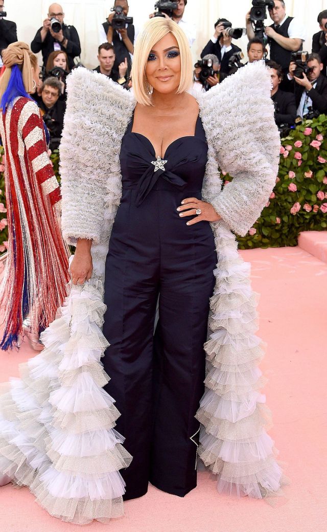 Nếu đàn con như Kylie-Kendall Jenner và Kim Kardashian chọn những bộ cánh vô cùng quyến rũ, xinh đẹp trên thảm đỏ thì ngược lại bà mẹ Kris Jenner bị mất điểm trong trang phục jumpsuit cùng sự kết hợp khó hiểu với chiếc áo choàng bồng bềnh chả ăn nhập với tổng thể