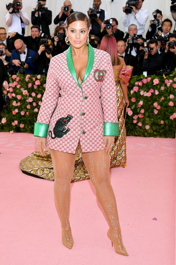 Trong kiểu váy dạng blazer đến từ nhà mốt Gucci mix cùng vớ da màu be không ăn nhập với trang phục, người mẫu ngoại cỡ Ashley Graham trông vô cùng tầm thường , không có gì nổi bật