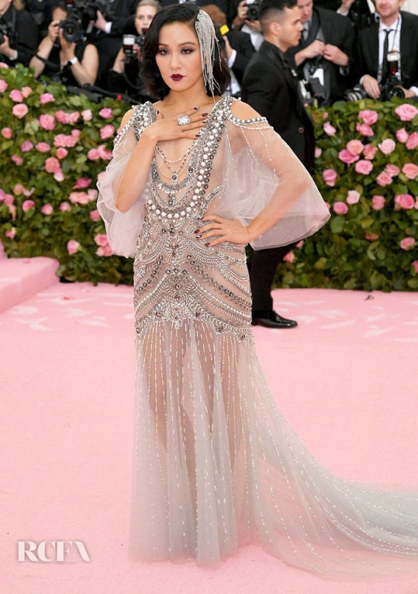 Nàng diễn viên “Crazry Rich Asians” Constance Wu dường như bị mất điểm khi hóa trang thành một nữ thần trong thiết kế váy trong suốt lấp lánh làm thấy rõ mồn một khuyết điểm ba vòng khá “phẳng lì” của cô.