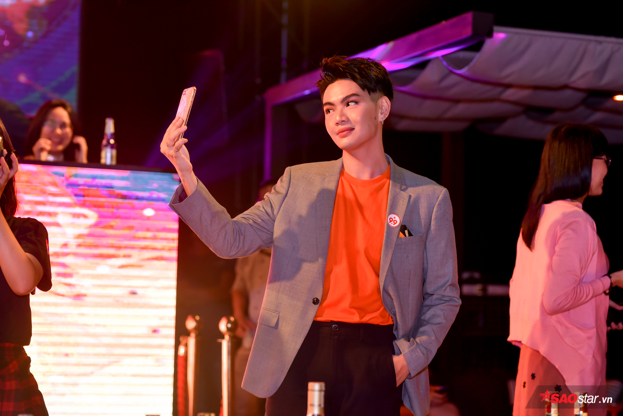 Có lẽ, Don Nguyễn chính là anh chàng nổi bật nhất buổi tiệc Orange party của Shopee với chiếc áo sơ-mi bắt mắt.