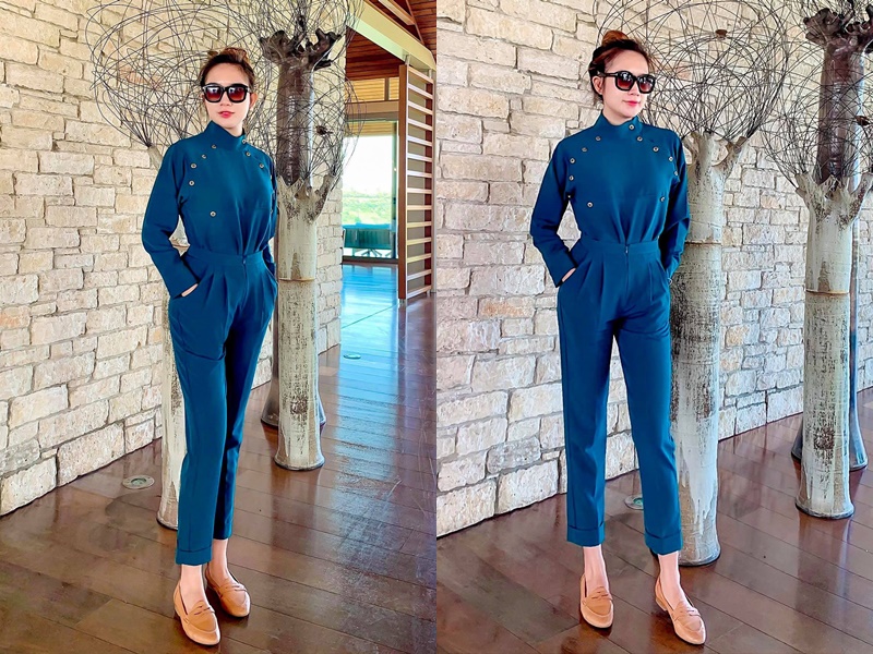 Minh Hà khá chuộng màu xanh cho các chuyến đi chơi xa