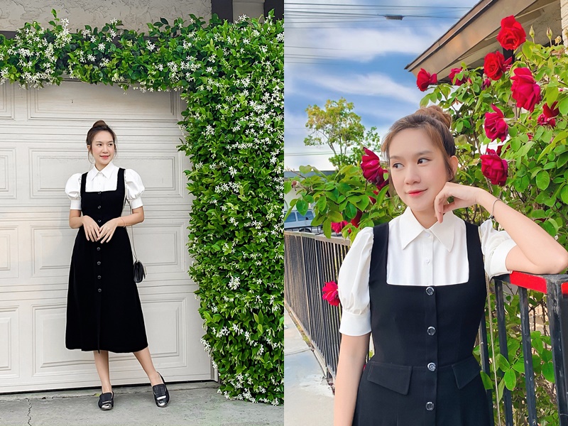 Minh Hà trẻ như thiếu nữ với chiếc váy yếm màu đen