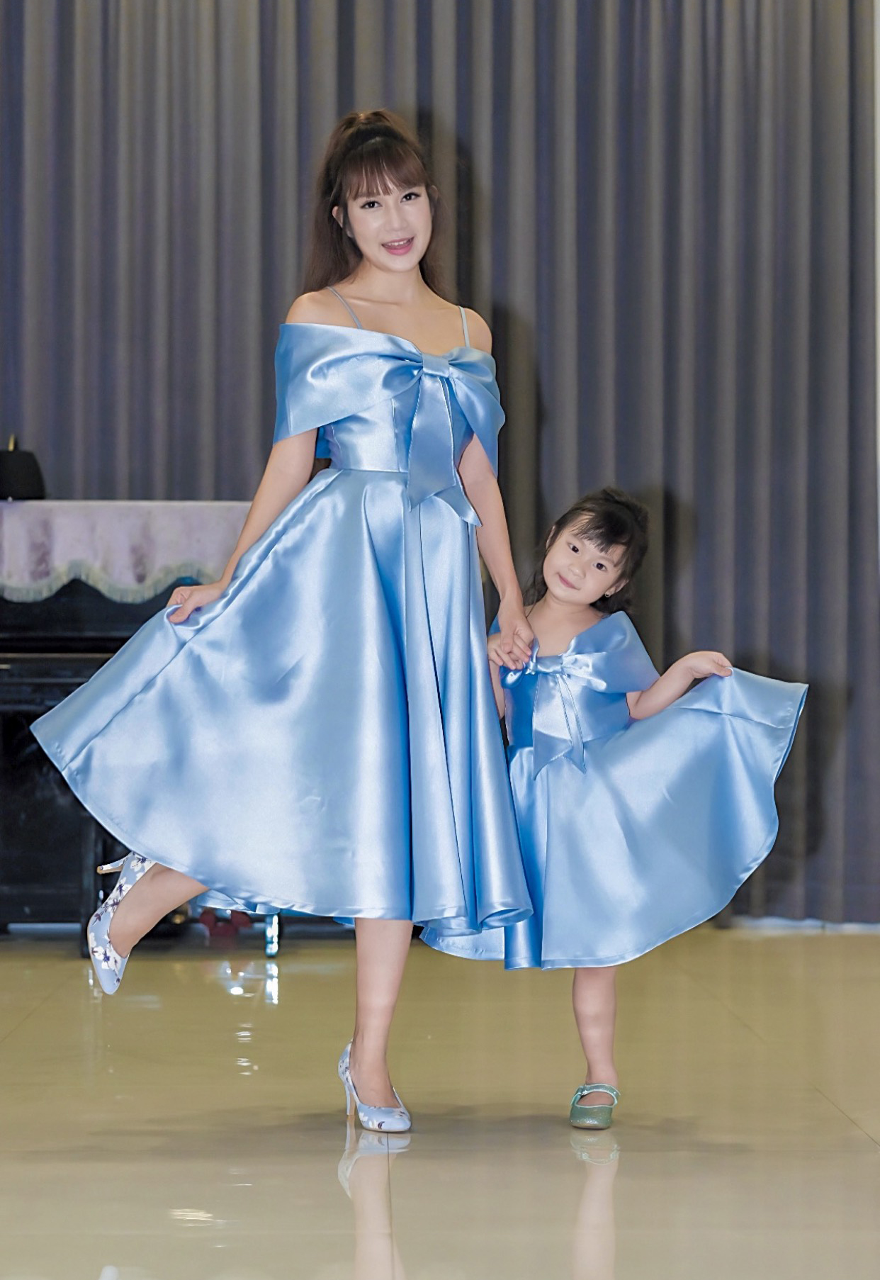 Minh Hà và con gái xinh xắn với đầm đôi xanh ngọc bích