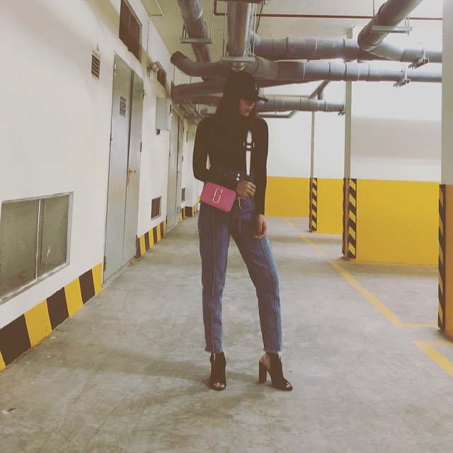Diễn viên Nam Thư lựa chọn set đồ gồm áo cổ lọ đen cùng quần jeans ôm, đi cùng cao gót đế vuông và túi xách màu nổi. So với bạn bè đồng nghiệp, cô là một trong những người đẹp được đánh giá là có gu ăn mặc khá ổn, ít khi mắc lỗi từ trang phục đời thường đến thảm đỏ.