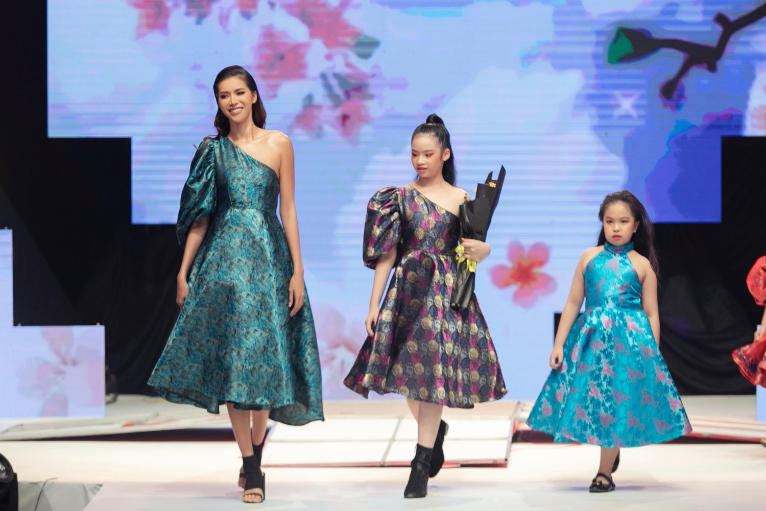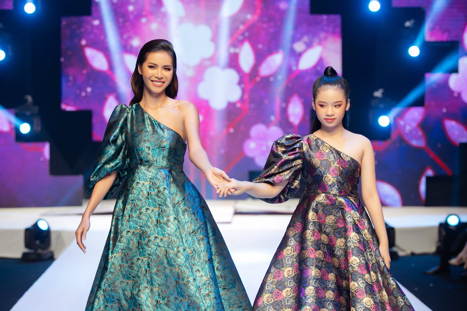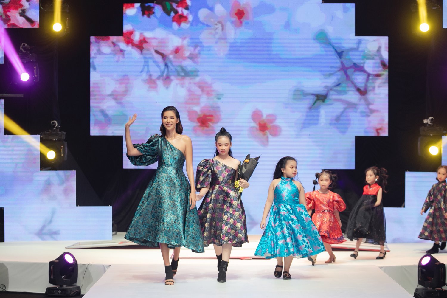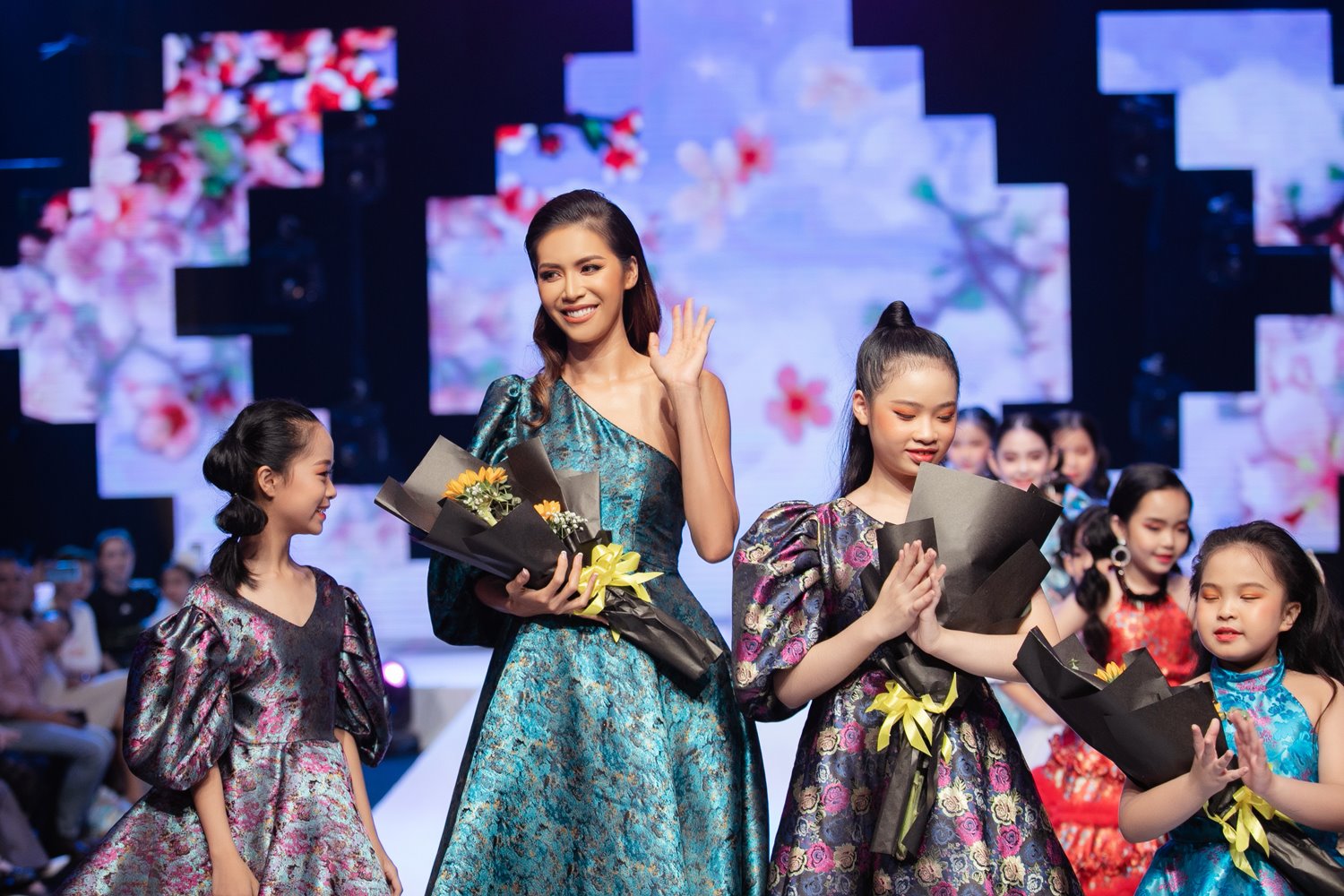 Diễn chung cùng dàn người mẫu nhí, Minh Tú không có ý tỏ ra lấn lướt mà ngược lại còn dìu dắt, nâng đỡ các bé làm sao để trình diễn được tự tin, ấn tượng nhất.