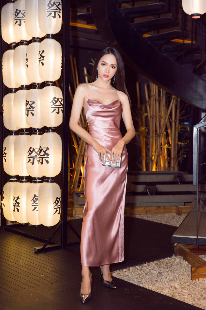 Hương Giang khiến người đối diện chẳng thể rời mắt với chiếc váy chất liệu lụa mềm nhẹ, ôm sát, khoe khéo thân hình “Vệ Nữ”.