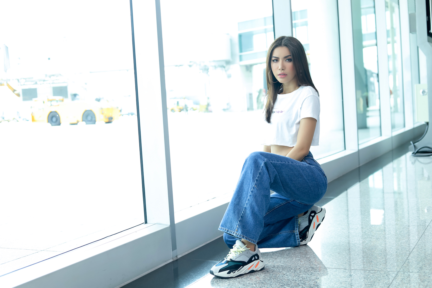 Chân dài chọn cho mình gout ăn mặc phóng khoáng, thể thao khá bụi bặm.