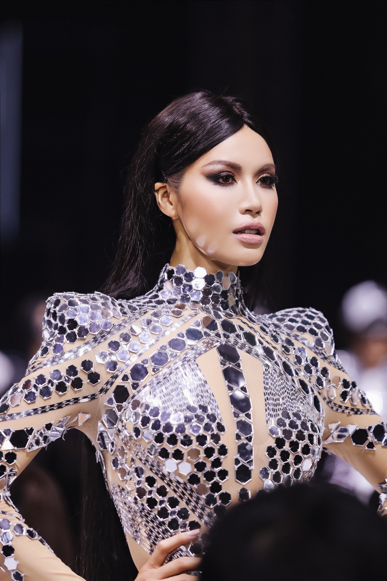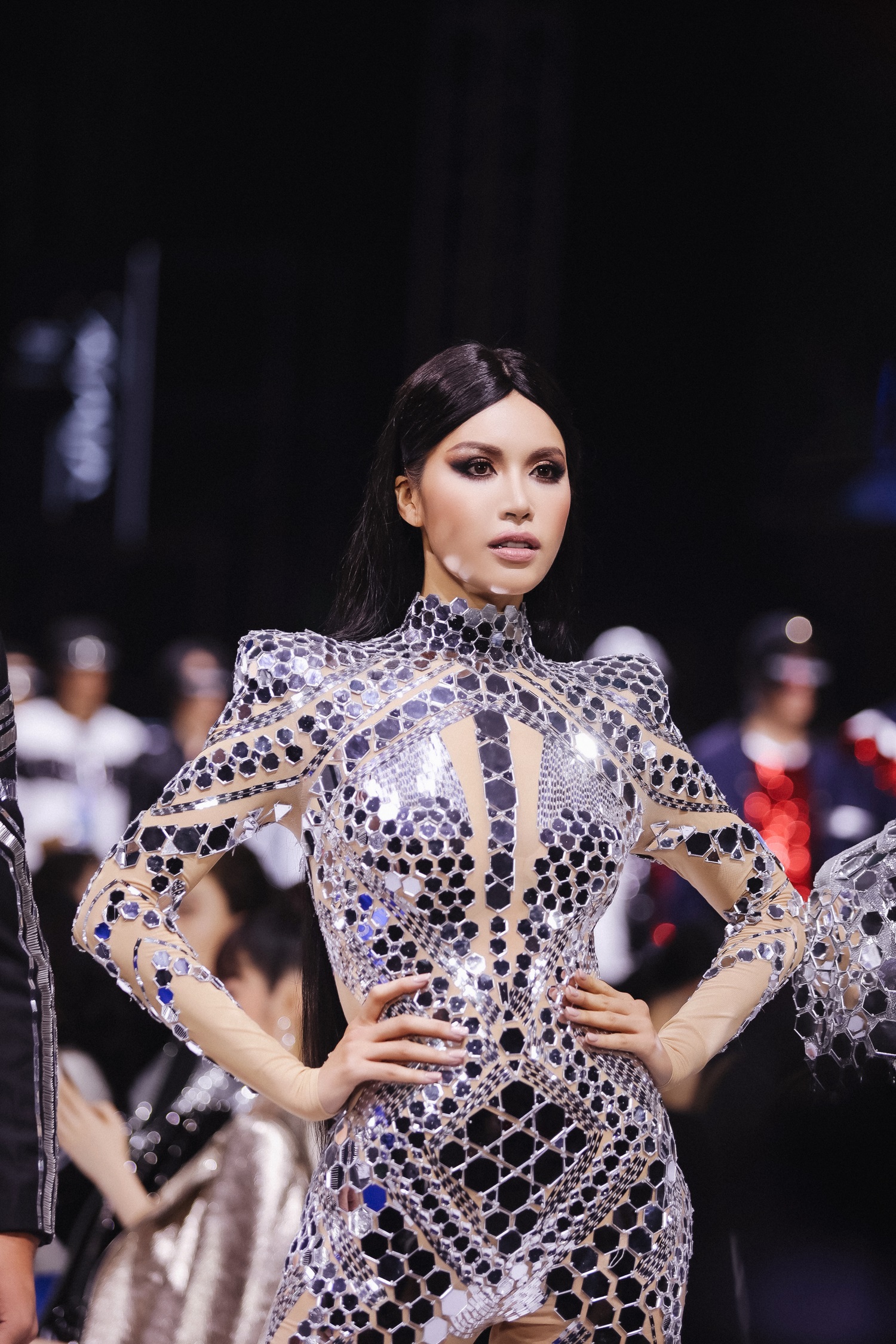 Cùng với mái tóc dài đen nhánh, người đẹp tự tin sải những bước catwalk thần thái khi trình diễn giữa dàn mẫu nam 6 múi. Phong cách đĩnh đạc của Minh Tú ngay lập tức chiếm hết sự chú ý của bao người.