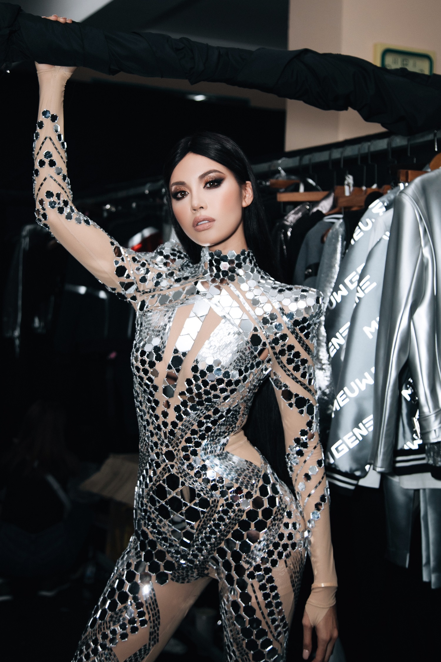 Giữa tiếng nhạc sôi động, phần trình diễn chuyên nghiệp, thần thái của Minh tú được đánh giá rất cao.