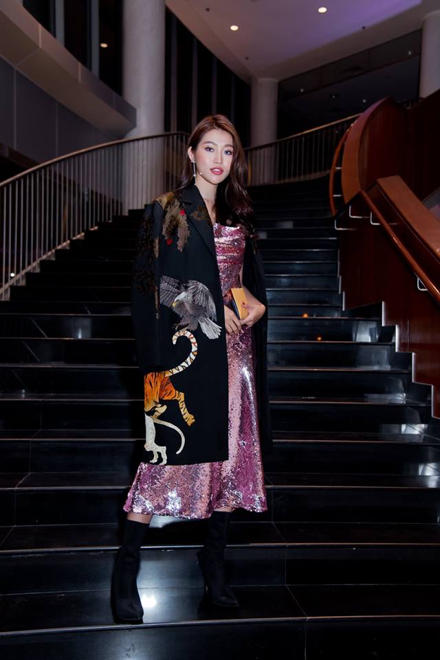 Người mẫu Quỷnh Châu là một “case” khá lạ với outfit trung hòa được cả sự cá tính lẫn nét ngọt ngào, trẻ trung. Từ cách mix chiếc áo khoác đến mẫu jumpsuit sequin bên trong đều cực kỳ phù hợp với nhau.