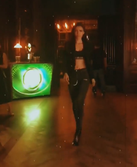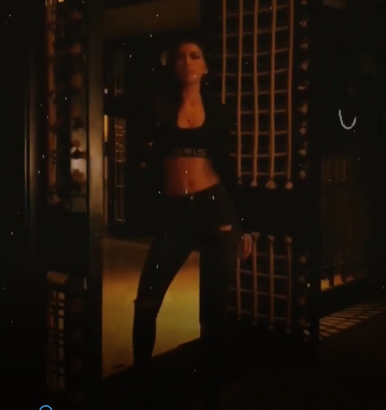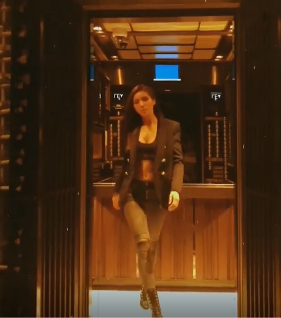 Màn làm dáng và với tay mở đèn của người đẹp gây ấn tượng mạnh.