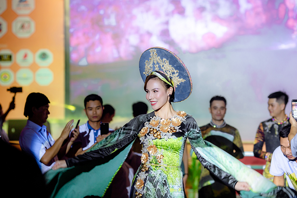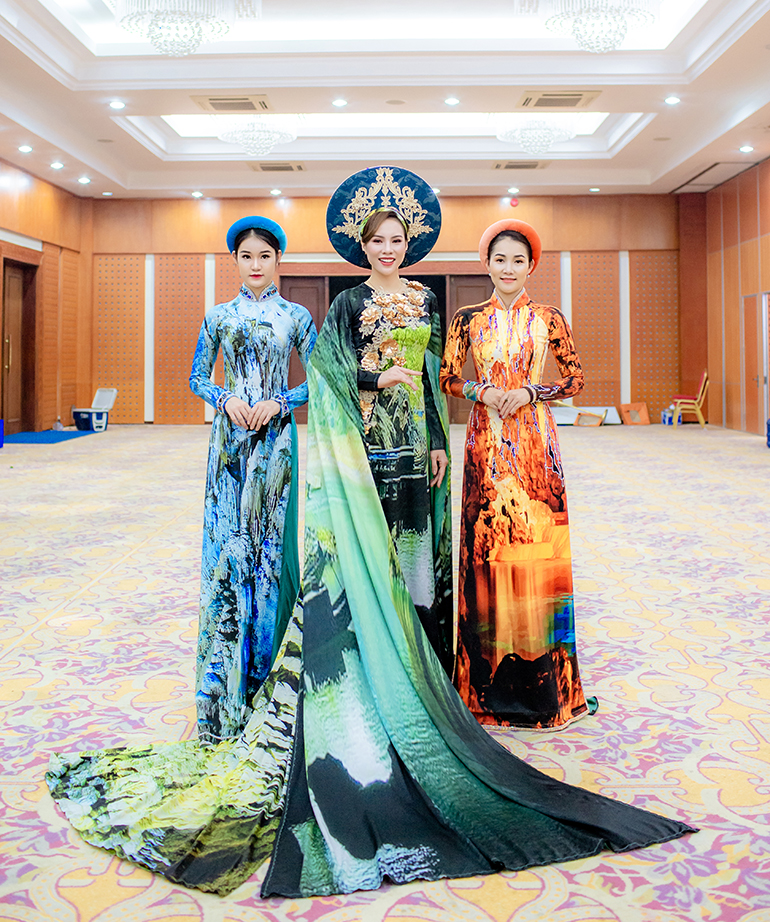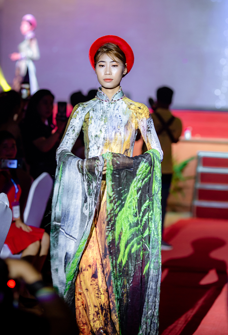 Áo dài họa tiết thiên nhiên với mục đích kêu gọi bảo vệ môi trường