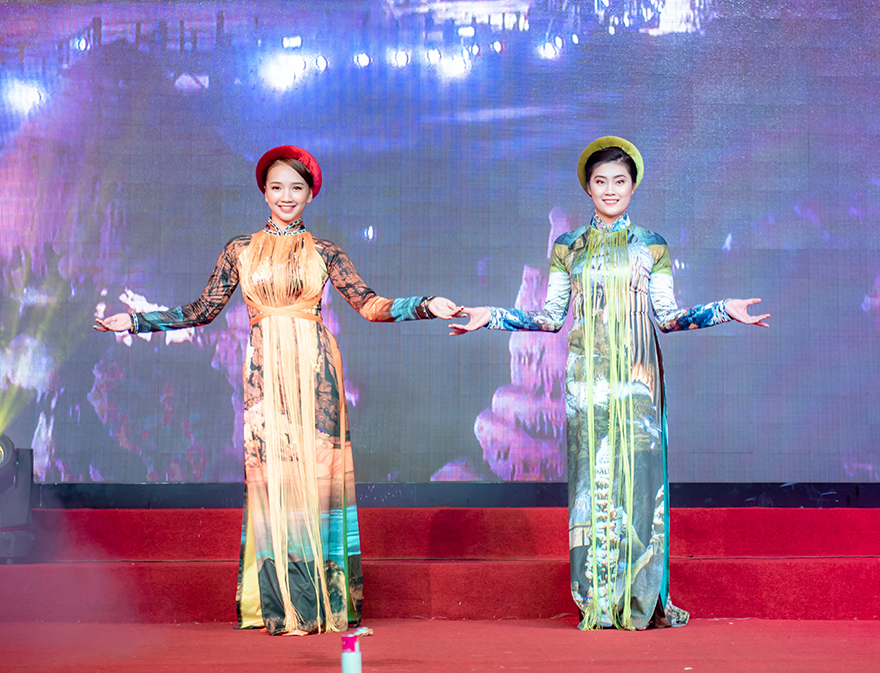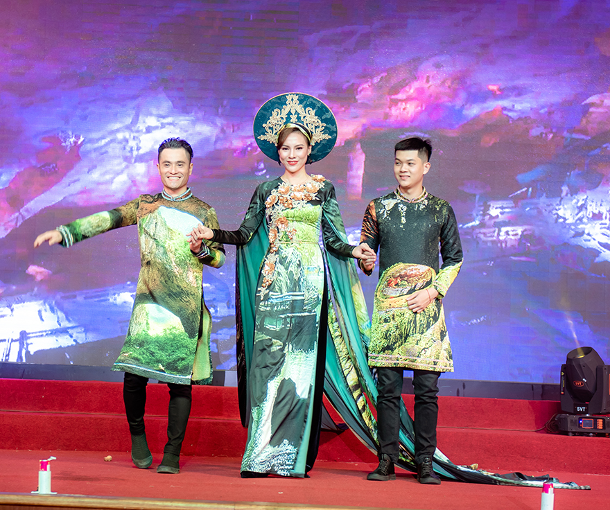 Vừa qua, NTK Nhật Dũng cùng NTK Hồng Quân đã giới thiệu BST áo dài “Di sản trong lòng đất” trong chương trình Đại hội Hiệp hội Du lịch diễn ra tại Quảng Bình. Những bộ áo dài lần lượt trình diễn khiến cho tất cả khán phòng không thể rời mắt.