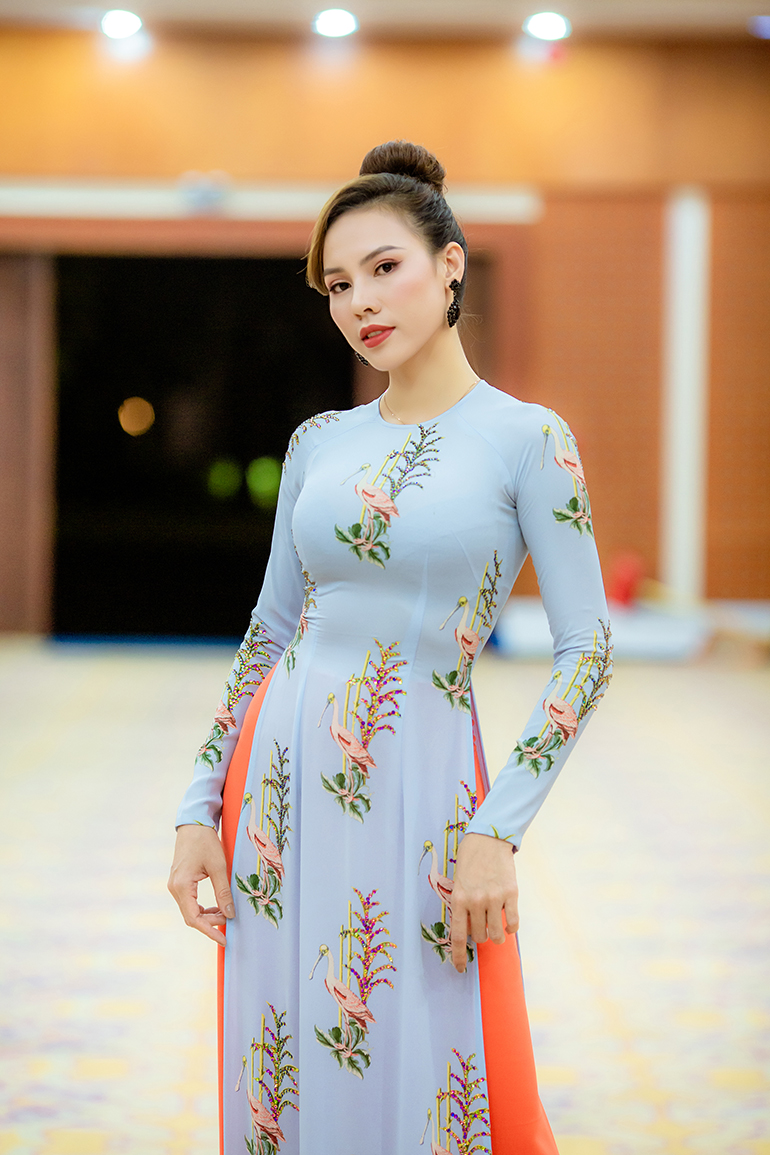 Áo dài lụa họa tiết bông lúa đính đá tỉ mỉ và con cò tần tảo trong ca dao Việt
