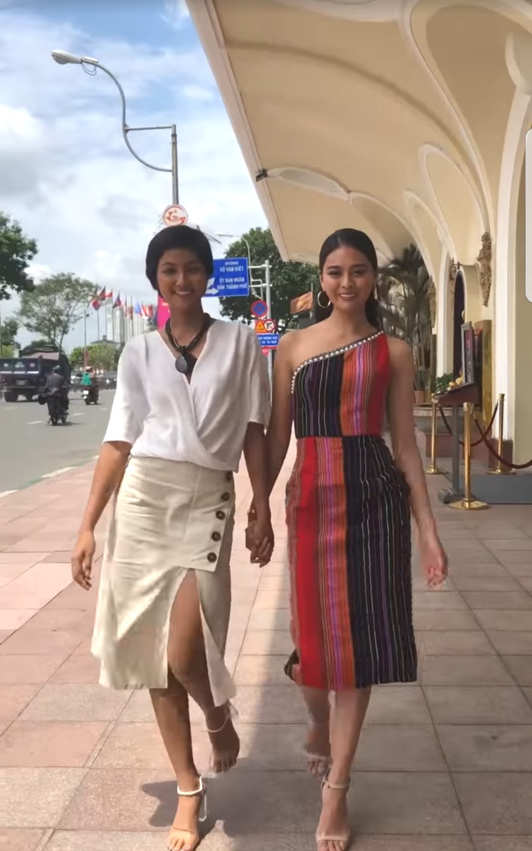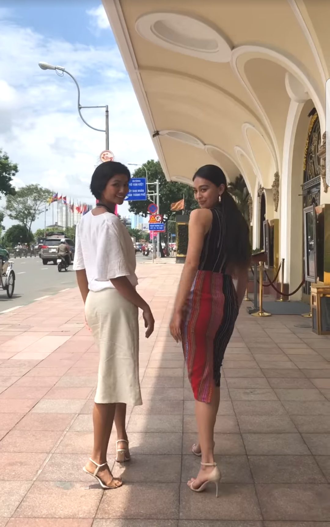 Thả dáng giữa phố phường Sài Gòn, hai người đẹp khiến khán giả cực kỳ thích thú.