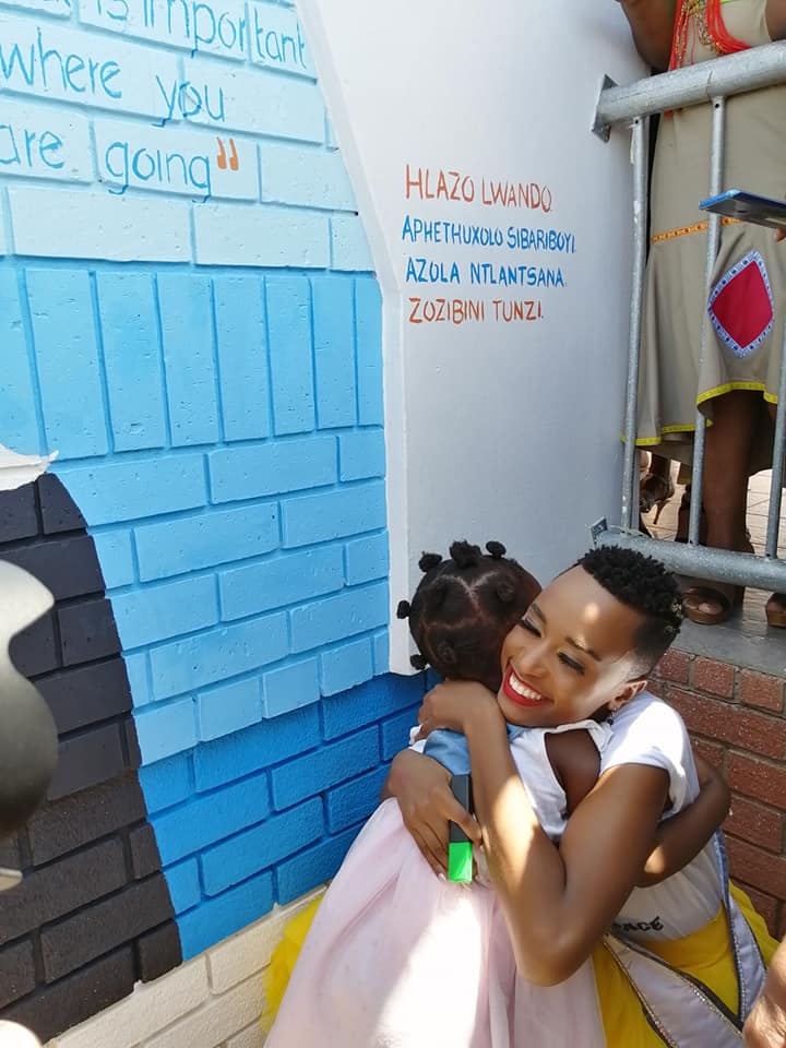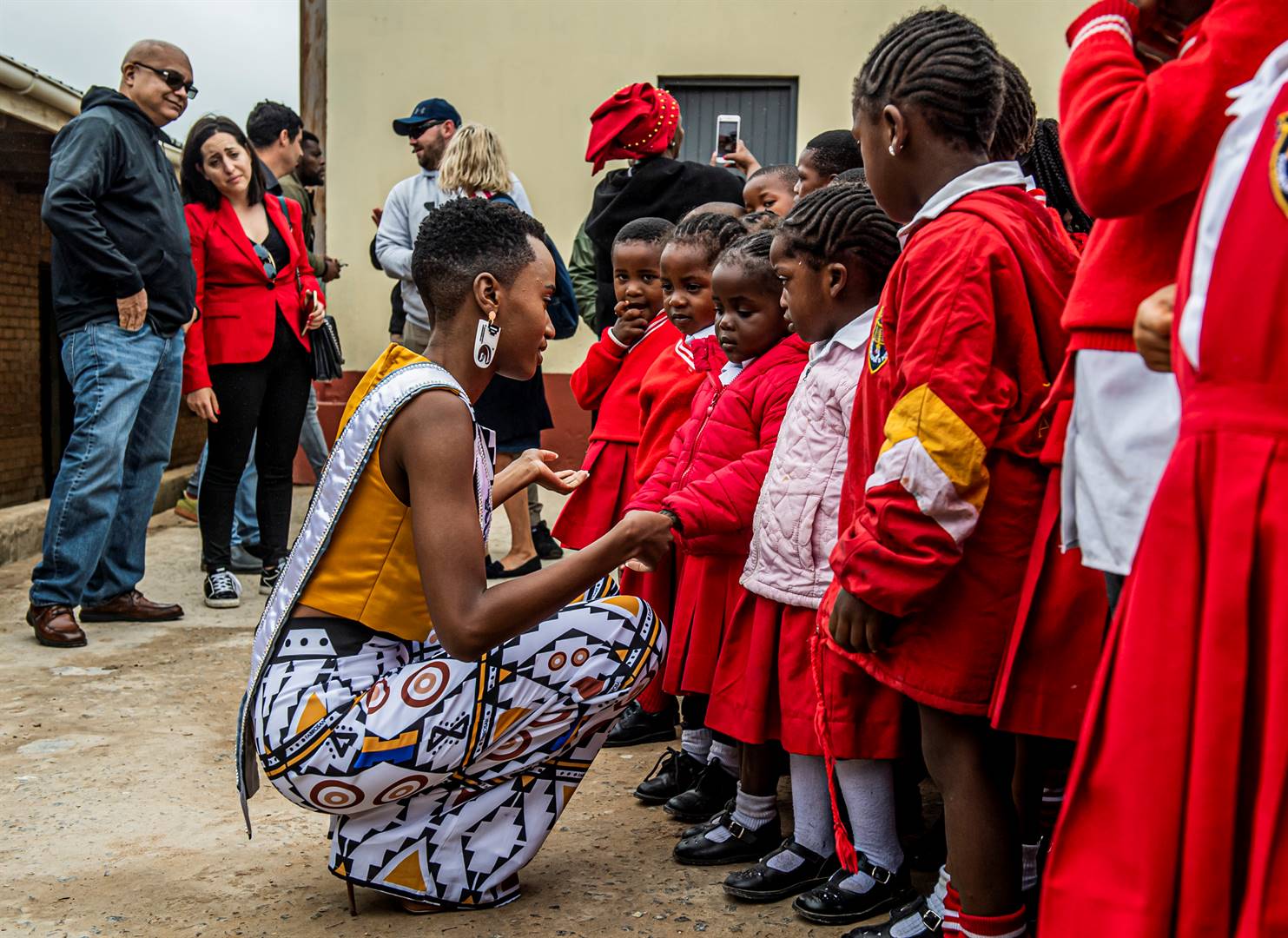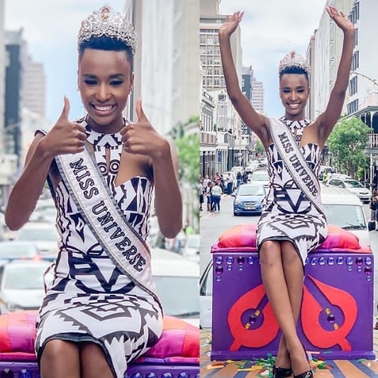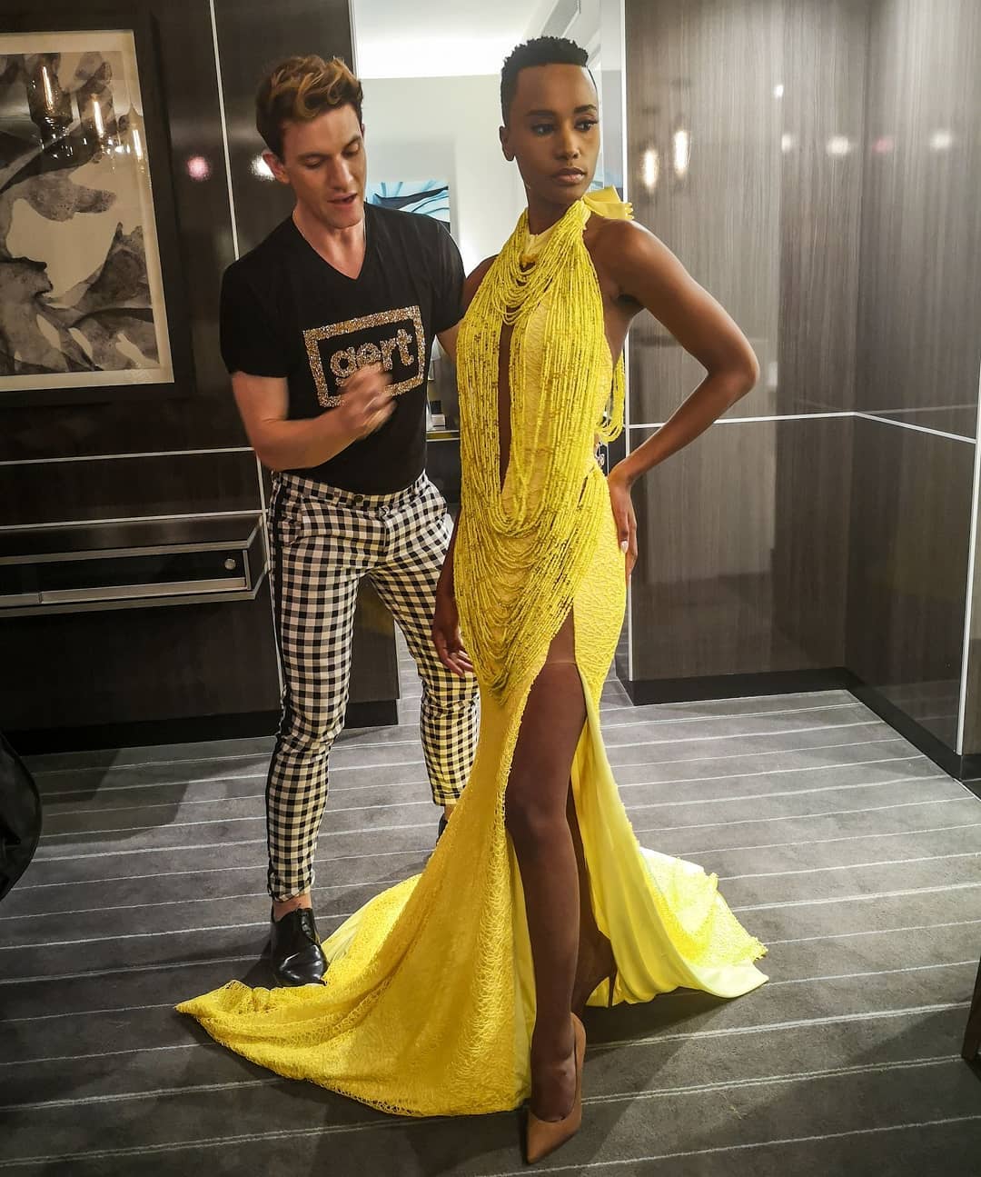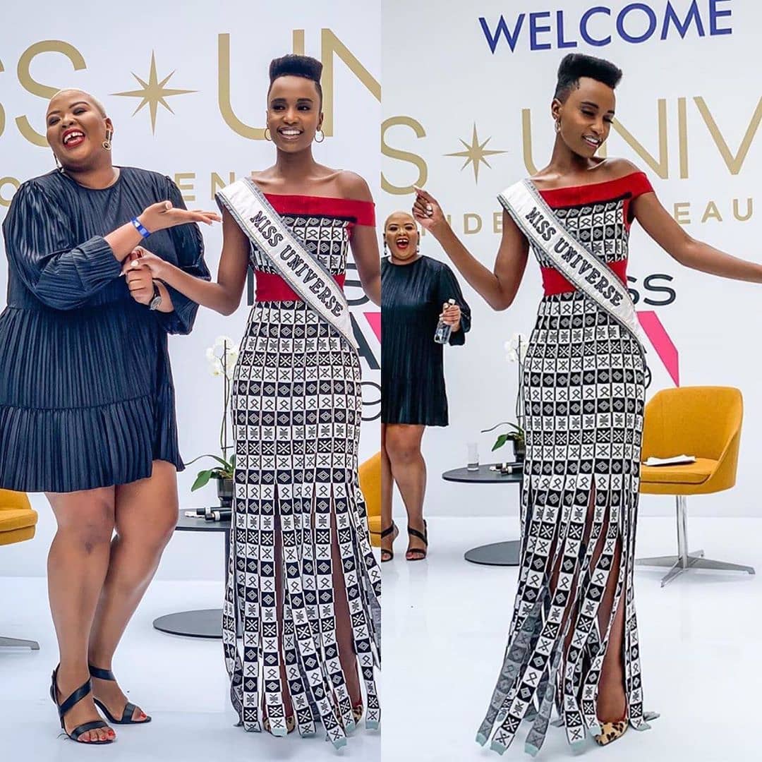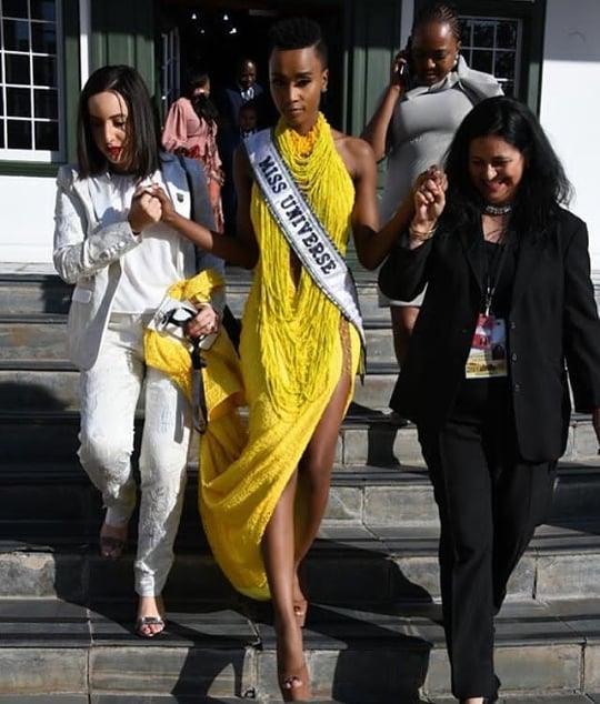 Hình ảnh Zozibini Tunzi được ê kíp chăm sóc tận chân tơ kẽ tóc khi ở quê nhà.