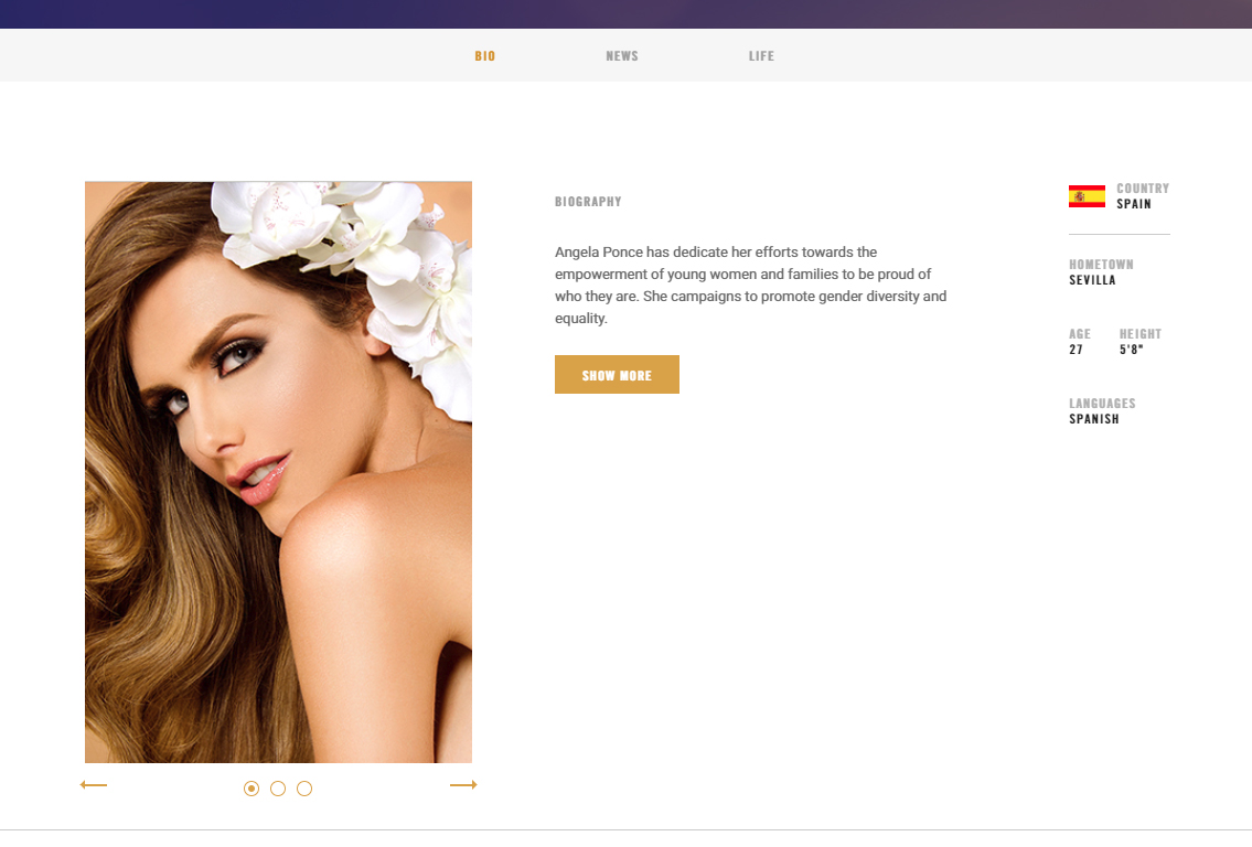 Ba năm trước, cô từng đại diện thành phố Seville tham gia cuộc thi Hoa hậu Thế giới Tây Ban Nha 2015 và dừng chân tại top 10. Trước khi mang trên mình danh xưng Hoa hậu, Angela Ponce từng hoạt động trong vai trò người mẫu chuyên nghiệp và là gương mặt đại diện cho nhiều nhãn hàng. Thế nên xét về kinh nghiệm tình trường ứng cử viên này có thừa.