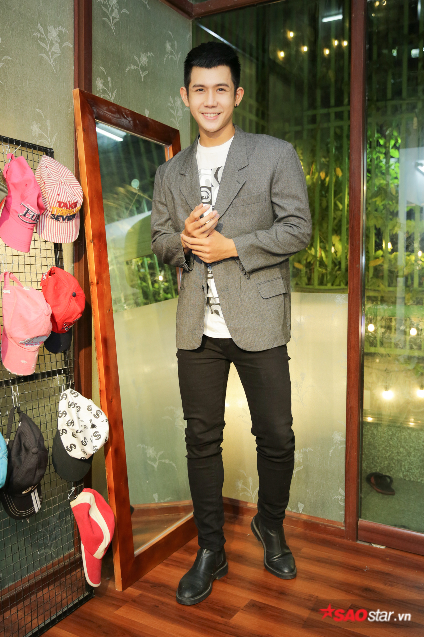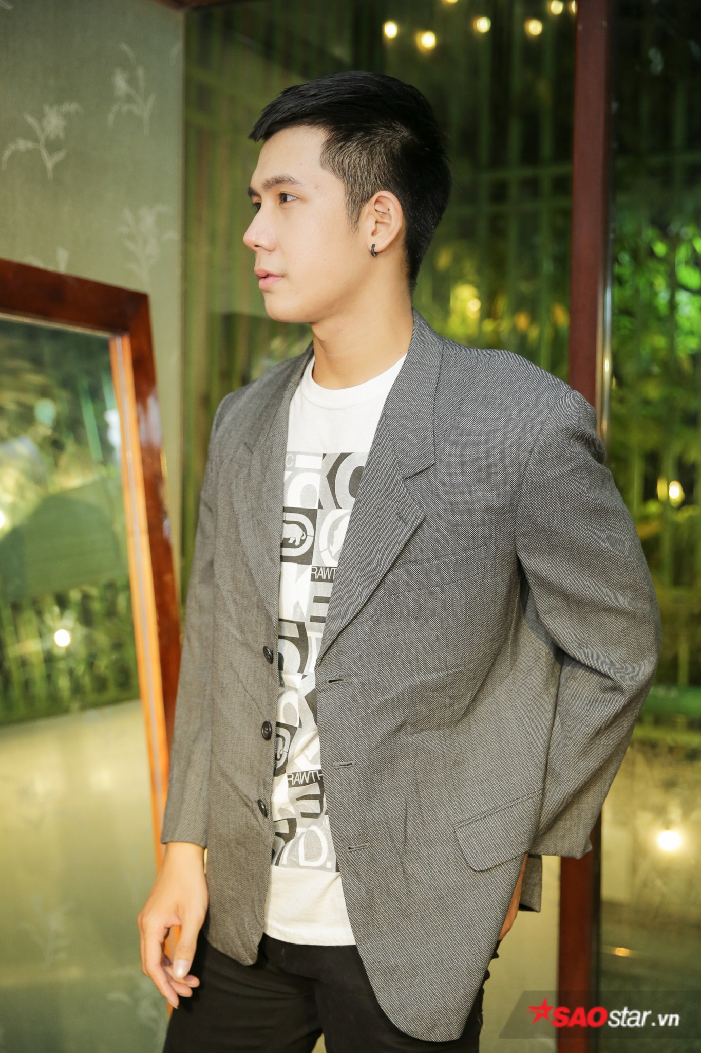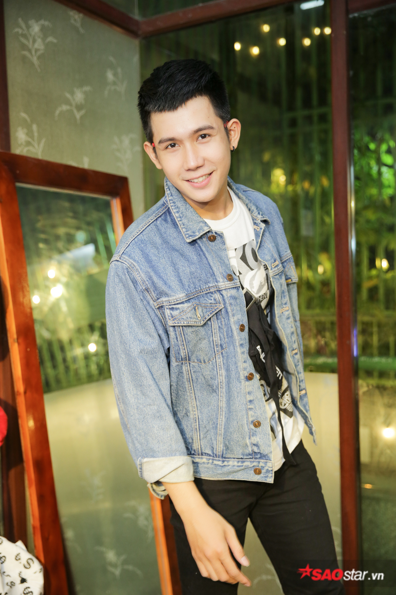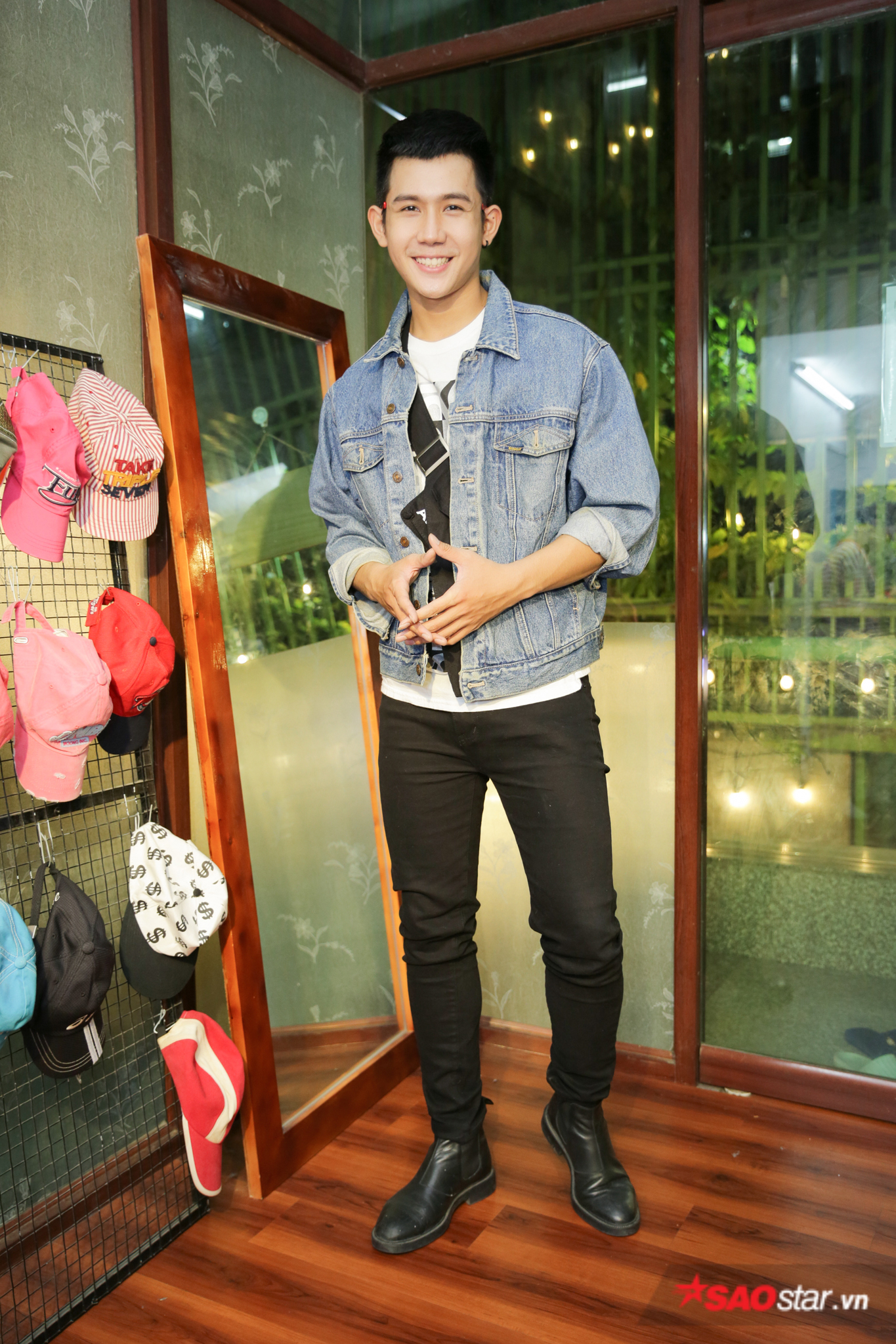 Outfit đi chơi mà Hùng chọn vô cùng đơn giản, năng động với áo khoác denim.