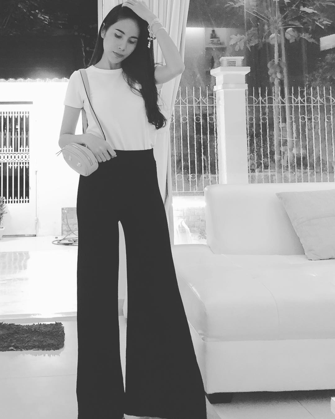 Giữa tiết trời oi ả, gam màu trung tính đen, trắng là sự lựa chọn được nhiều nghệ sĩ ưa chuộng. Đơn cử như Ngô Thanh Vân cùng outfit này.