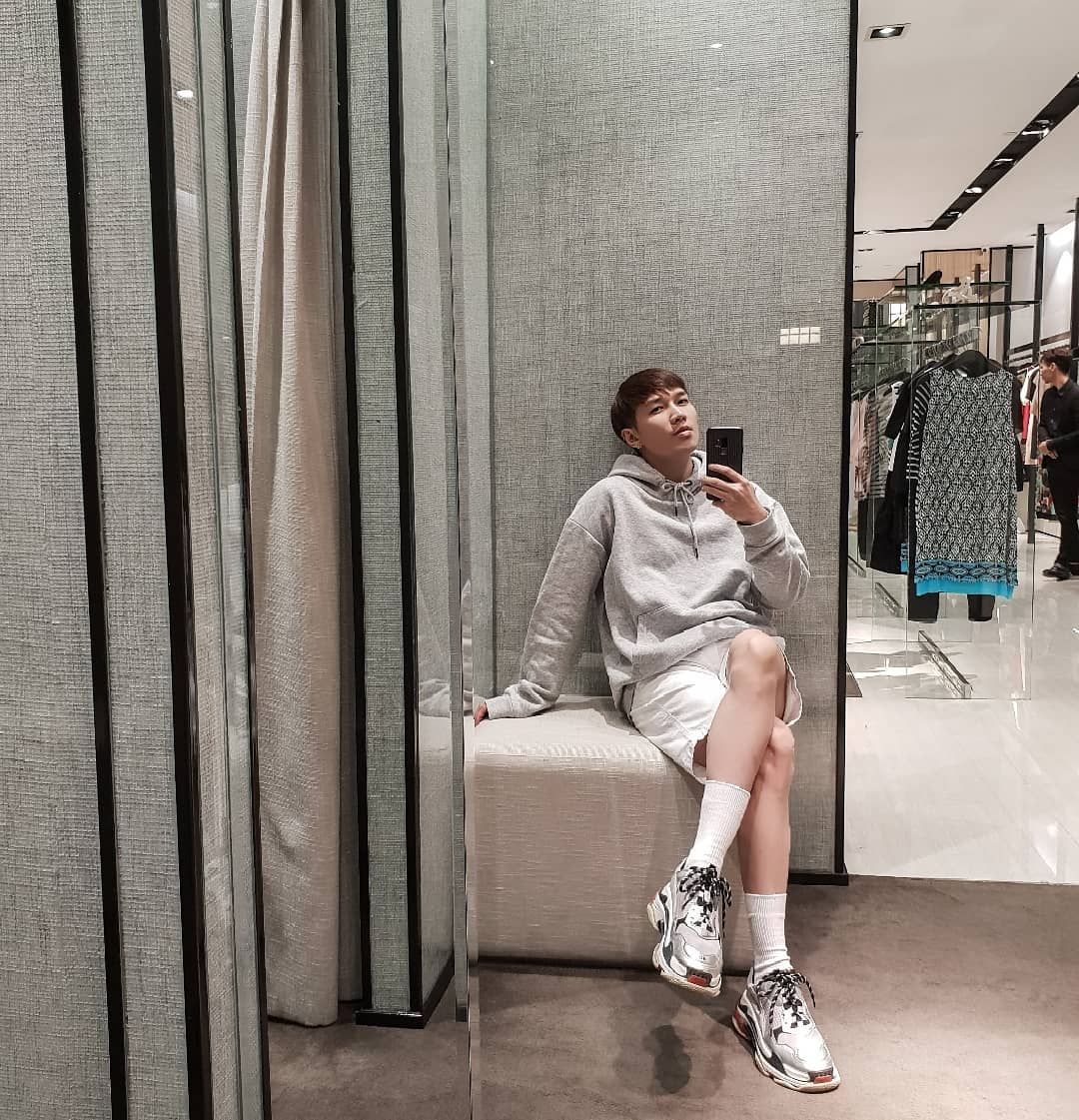 Stylist Lê Minh Ngọc tiếp tục khoe trình “hack tuổi” cùng áo sweater, quần short và giày sneaker.