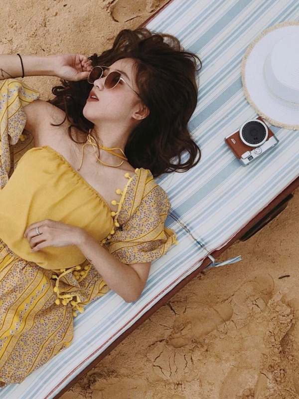Từ trang phục cho đến phụ kiện đều rât ton-sur-ton, cô nhanh chóng ghi lại hình ảnh xinh đẹp của mình khi tận hưởng một chuyến dã ngoại tại bãi biển những ngày chớm hè.