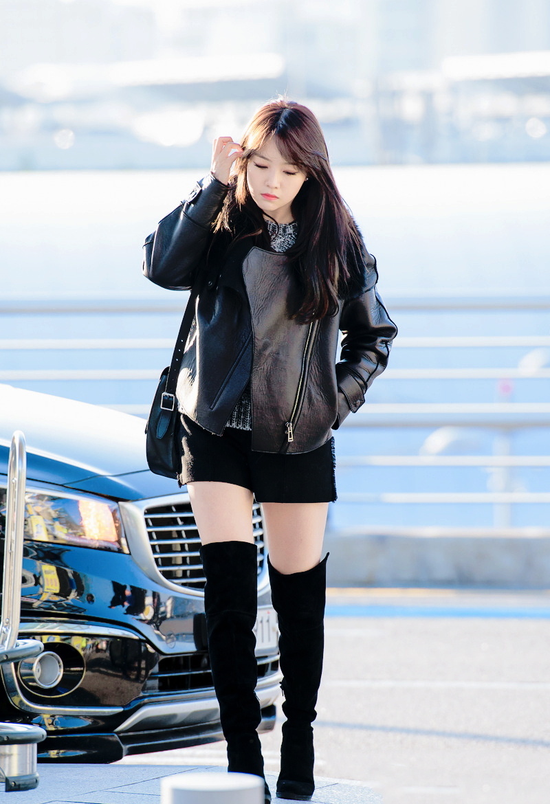 Seolhyun với váy len ôm sát và boots đen chính là sự lựa còn tuyệt hảo cho những nàng theo đuổi hình tượng quyến rũ.