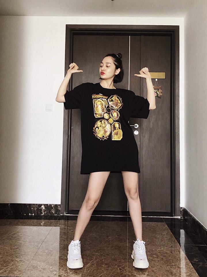 Bảo Anh có một seri các loại áo thun dáng siêu rộng, chủ yếu là màu đen chỉ khác họa tiết in trên áo. Những chiếc áo này Bảo Anh luôn diện cùng một đôi sneaker thật ngầu như Balenciaga Triple S màu trắng, và tuyệt đối không thấy bóng dáng chiếc quần đâu.
