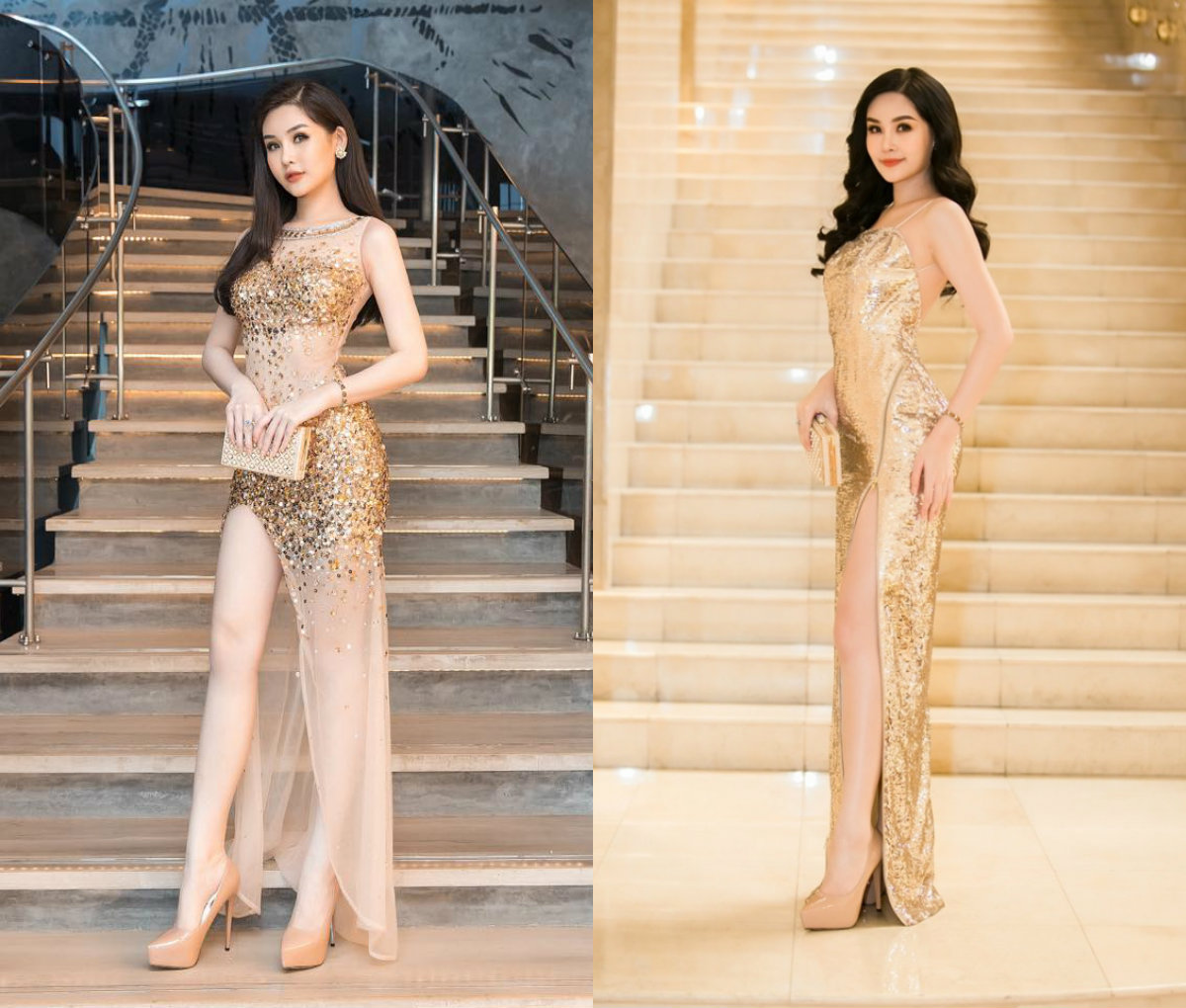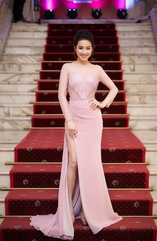 Hoa hậu Đại dương Ngân Anh cũng không thể “chối từ” khoe chân trên thảm đỏ các sự kiện gần đây. Cô khoe vóc dáng tối đa trong những thiết kế xẻ đùi táo bạo.