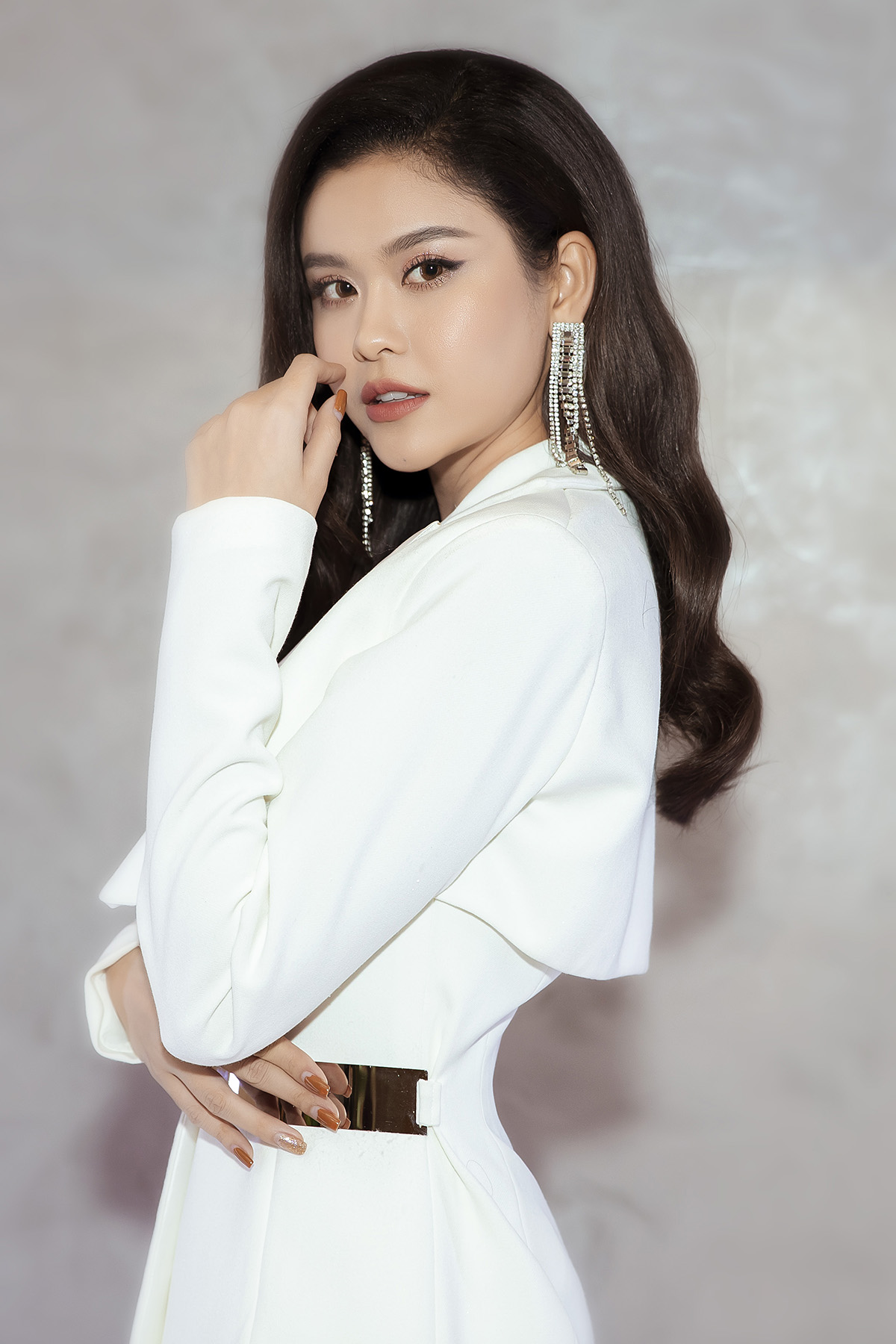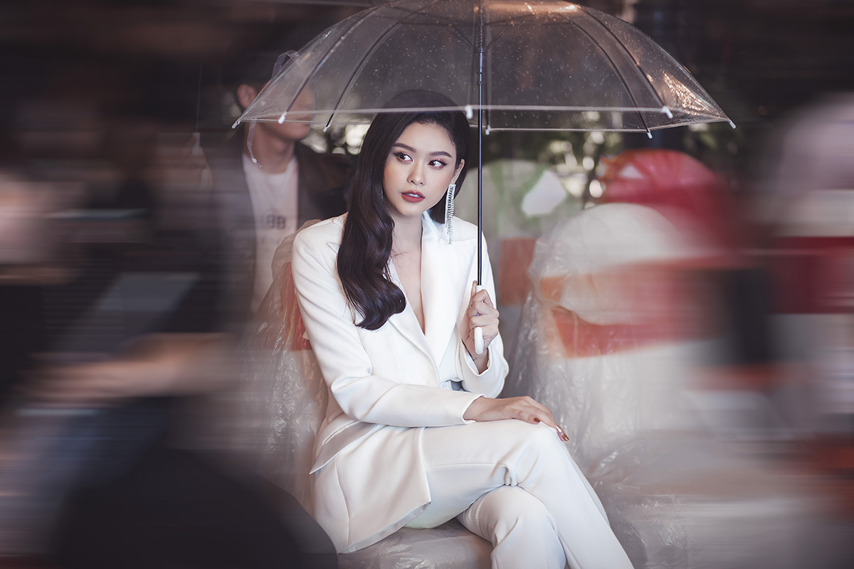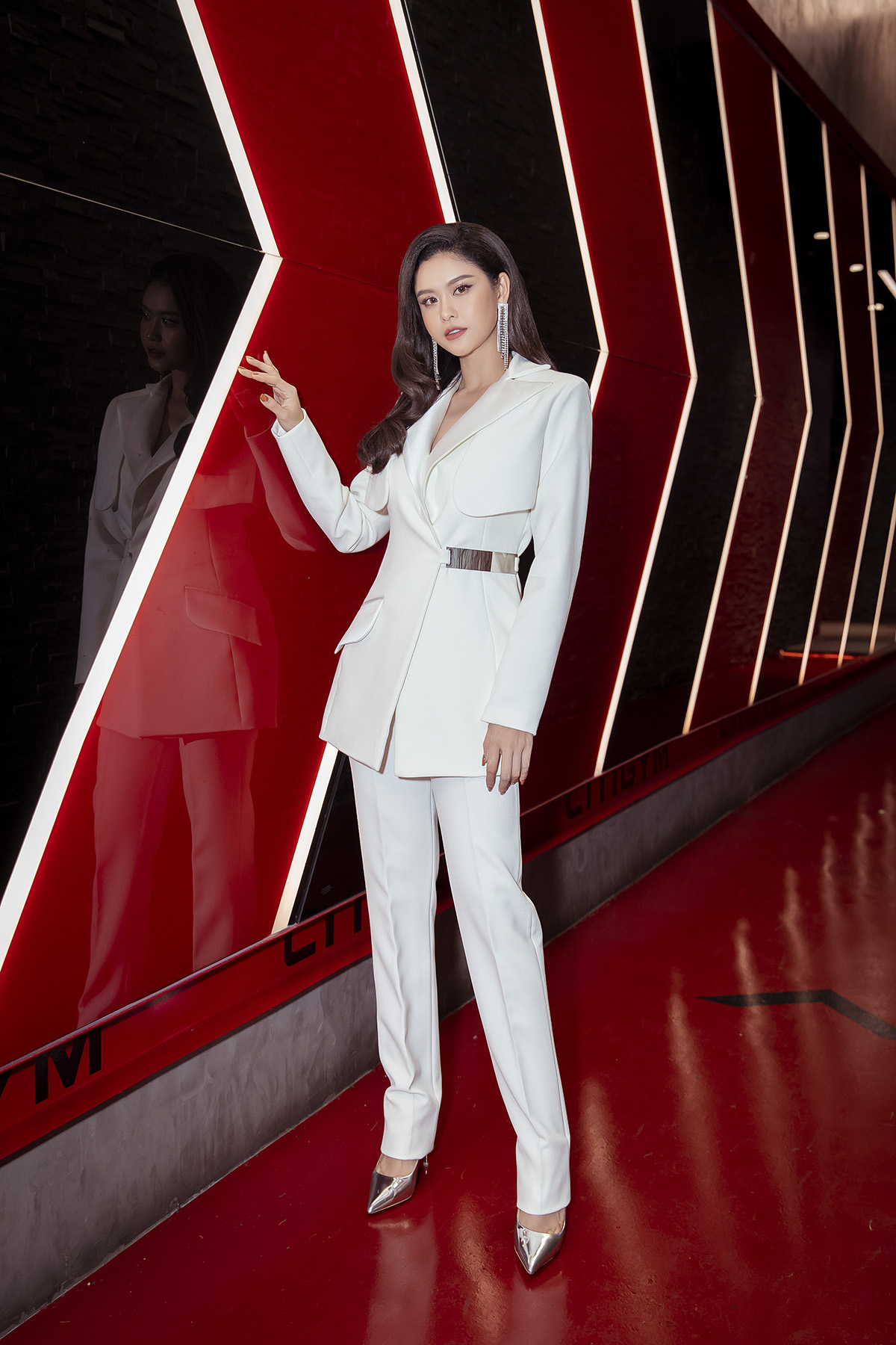 Tính chất của sự kiện đòi hỏi người tham dự phải thể hiện chất riêng cá tính, phong cách của mình, Trương Quỳnh Anh cũng chọn cho mình một hình ảnh hoàn toàn khác lạ. So với những bộ cánh điệu đà, “bánh bèo” như trước kia, lần này Trương Quỳnh Anh được stylist Kye Nguyễn chọn cho mình bộ suit màu trắng với điểm nhấn ấn tượng ở phần eo từ NTK Lý Giám Tiền.