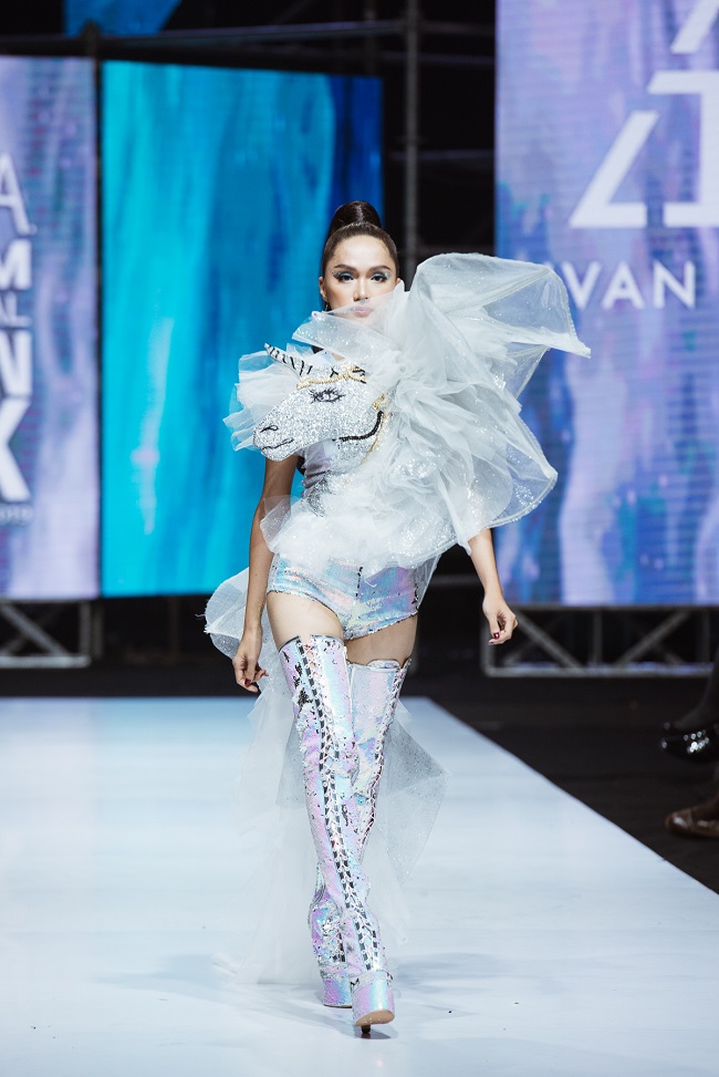 Hoa hậu Hương Giang xuất hiện tại show thời trang của NTK Ivan Trần trong bộ cánh vô cùng lạ mắt với vị trí vedette lập tức thu hút sự chú ý của khán giả khiến không thể ai rời mắt.